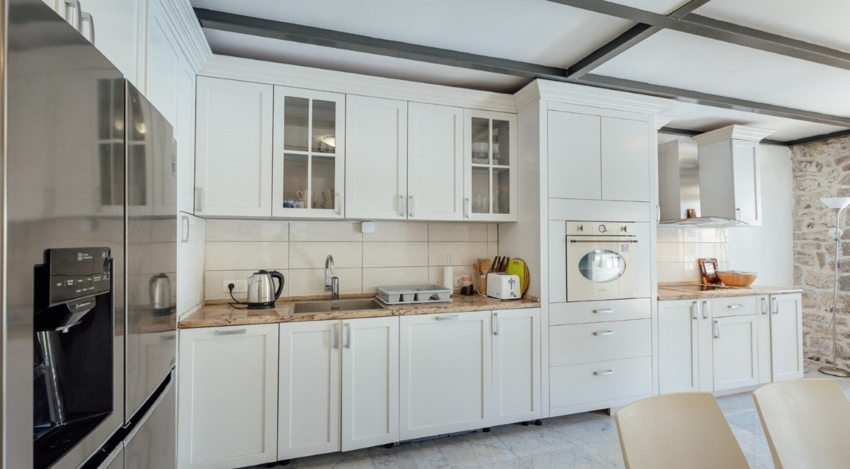 The total area of the plot is approximately 9,000 m². Over the past 5 years, the current owners have restored every old stone wall on the property, using local stone and craftsmen where possible. They also restored the creek bed that runs from the private road to the low grounds of the property and created steps between all the terraces.