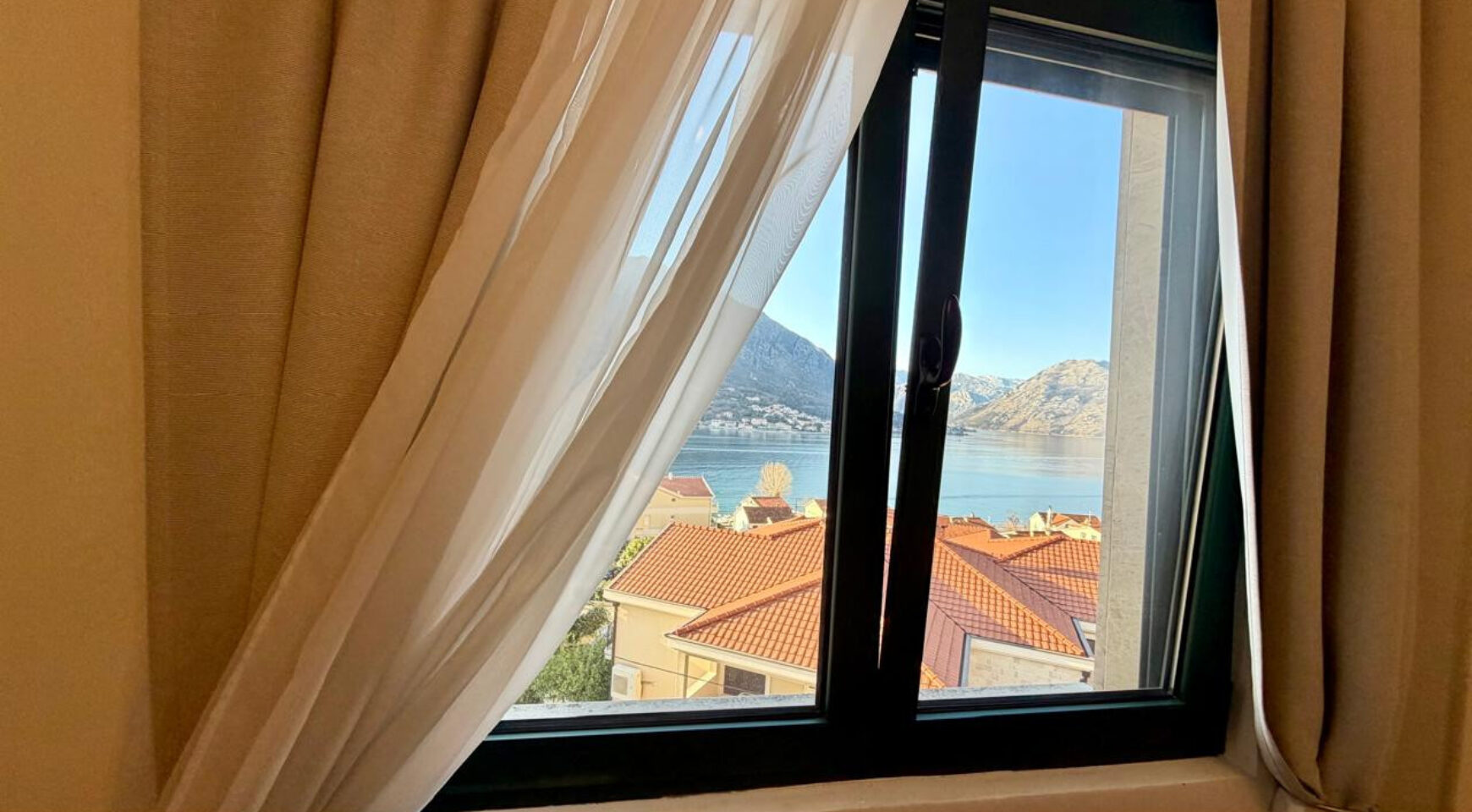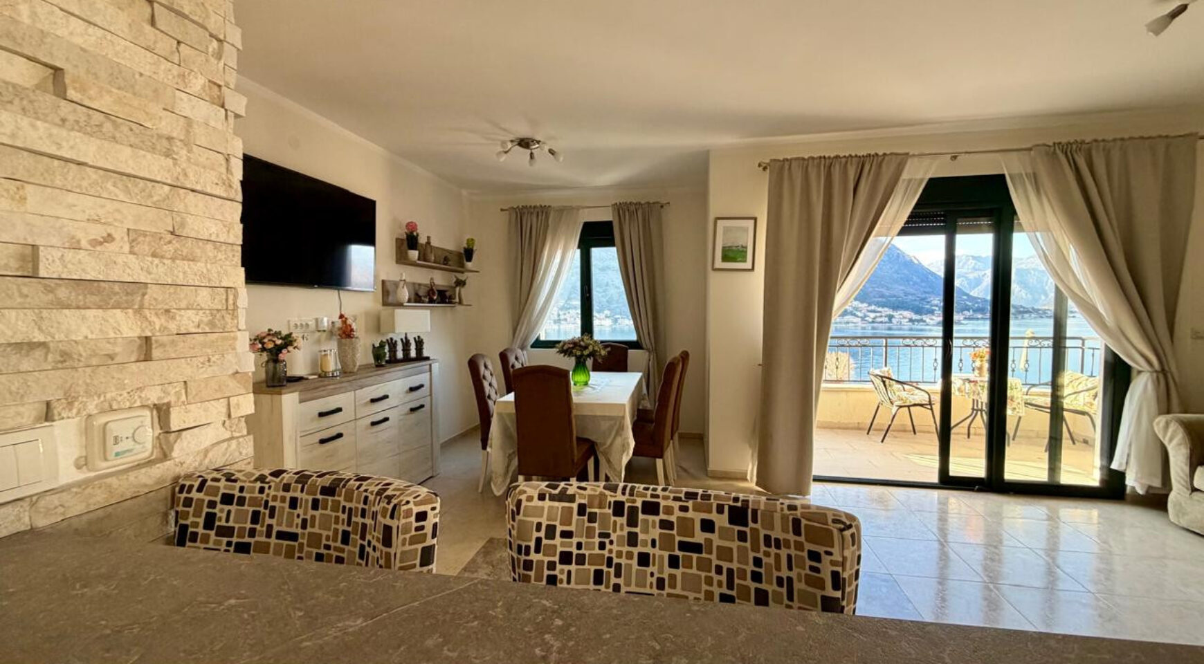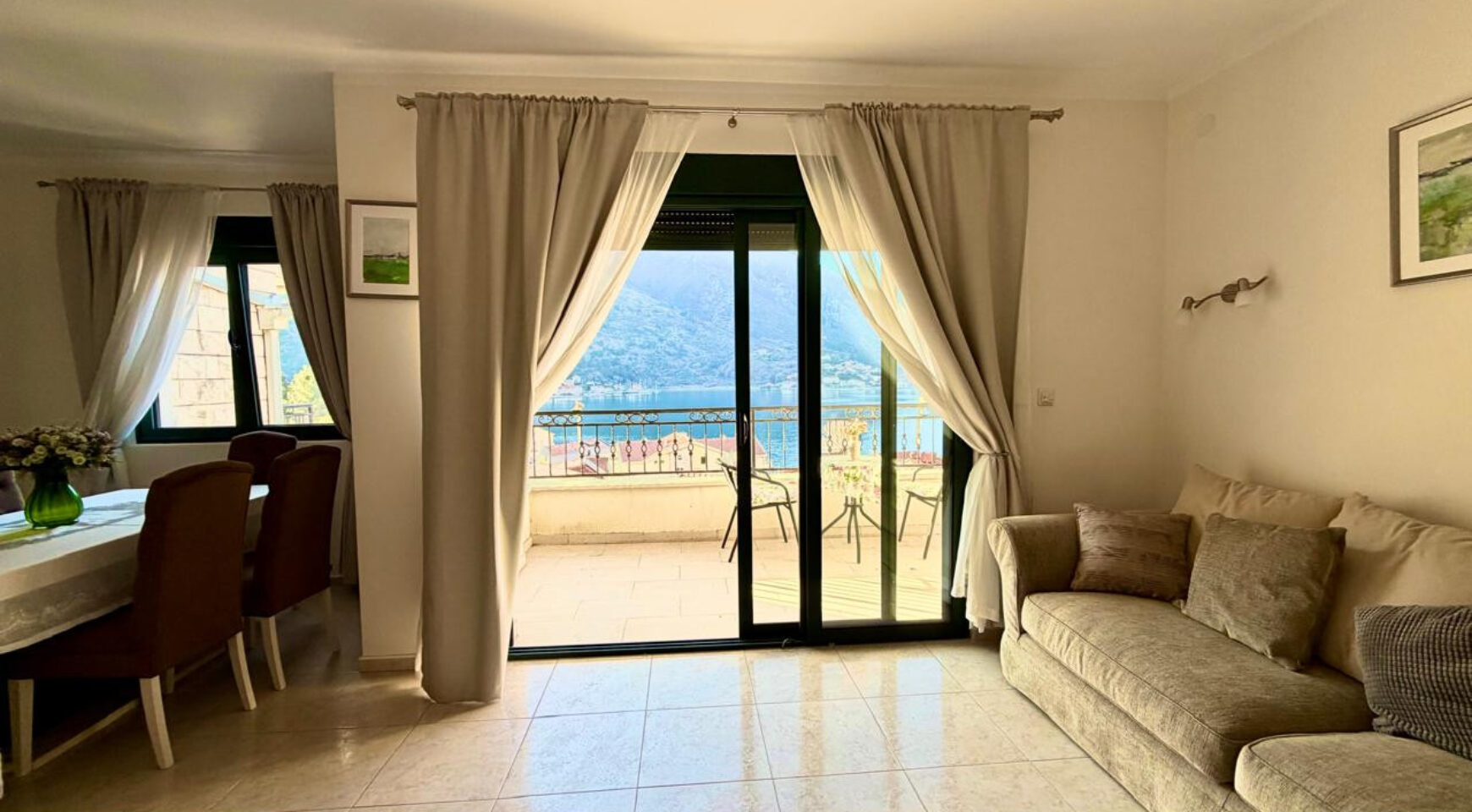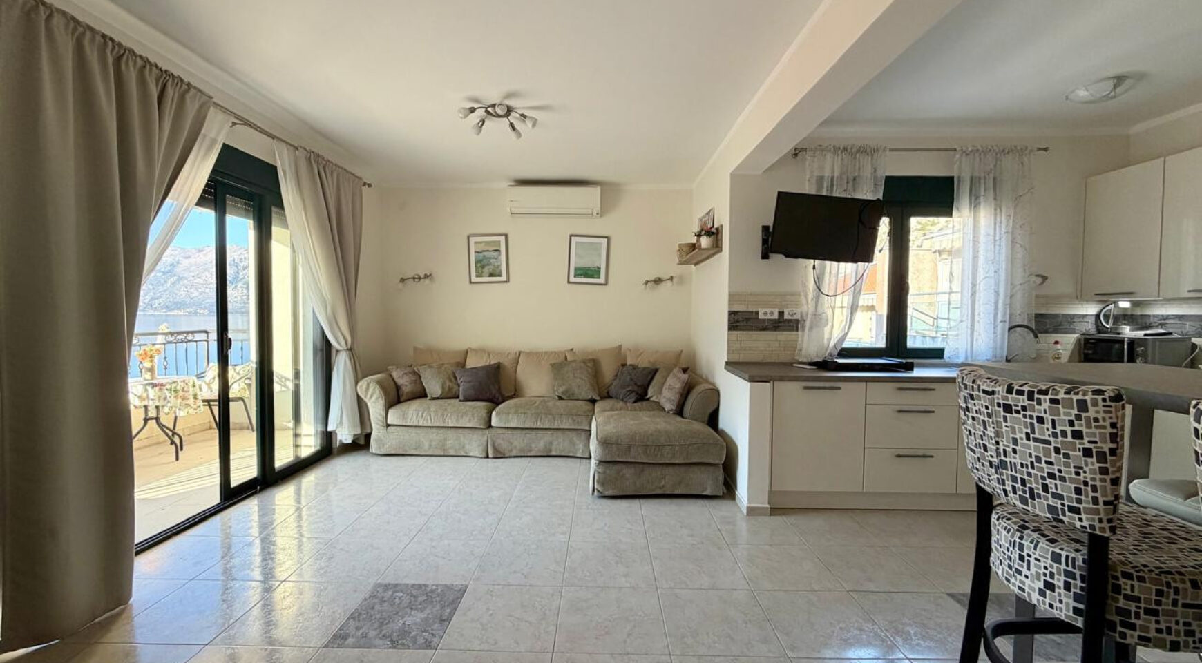 The town of Kotor, the pearl of the bay, is a 5-minute drive away, or you can stroll along the seafront promenade with its numerous cafes and restaurants, a delightful experience year-round. The town itself is surrounded by olive and citrus trees. The town has all the necessary amenities: shops, restaurants, pharmacies, and a clinic.