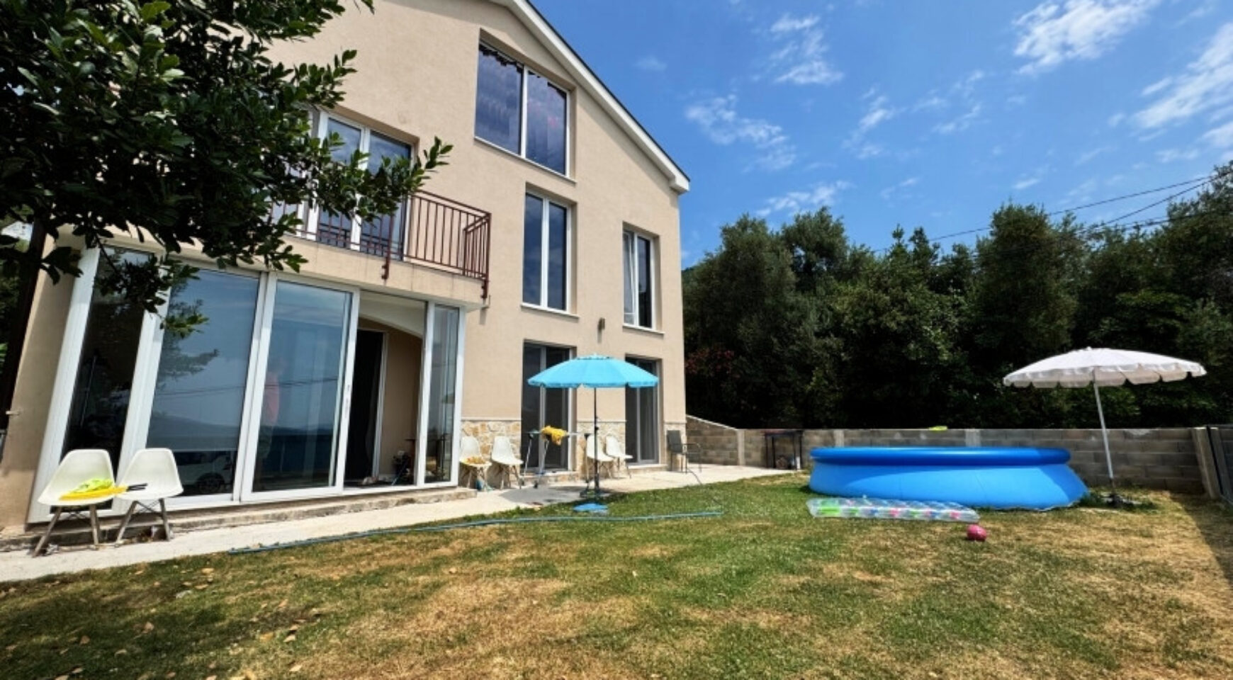The plot area is 1,018 m². The plot consists of two cadastral units, so it is possible to construct a new building above the existing house. The house is surrounded by abundant greenery and beautiful nature. The sea is 650 meters away, or a 10-minute walk.