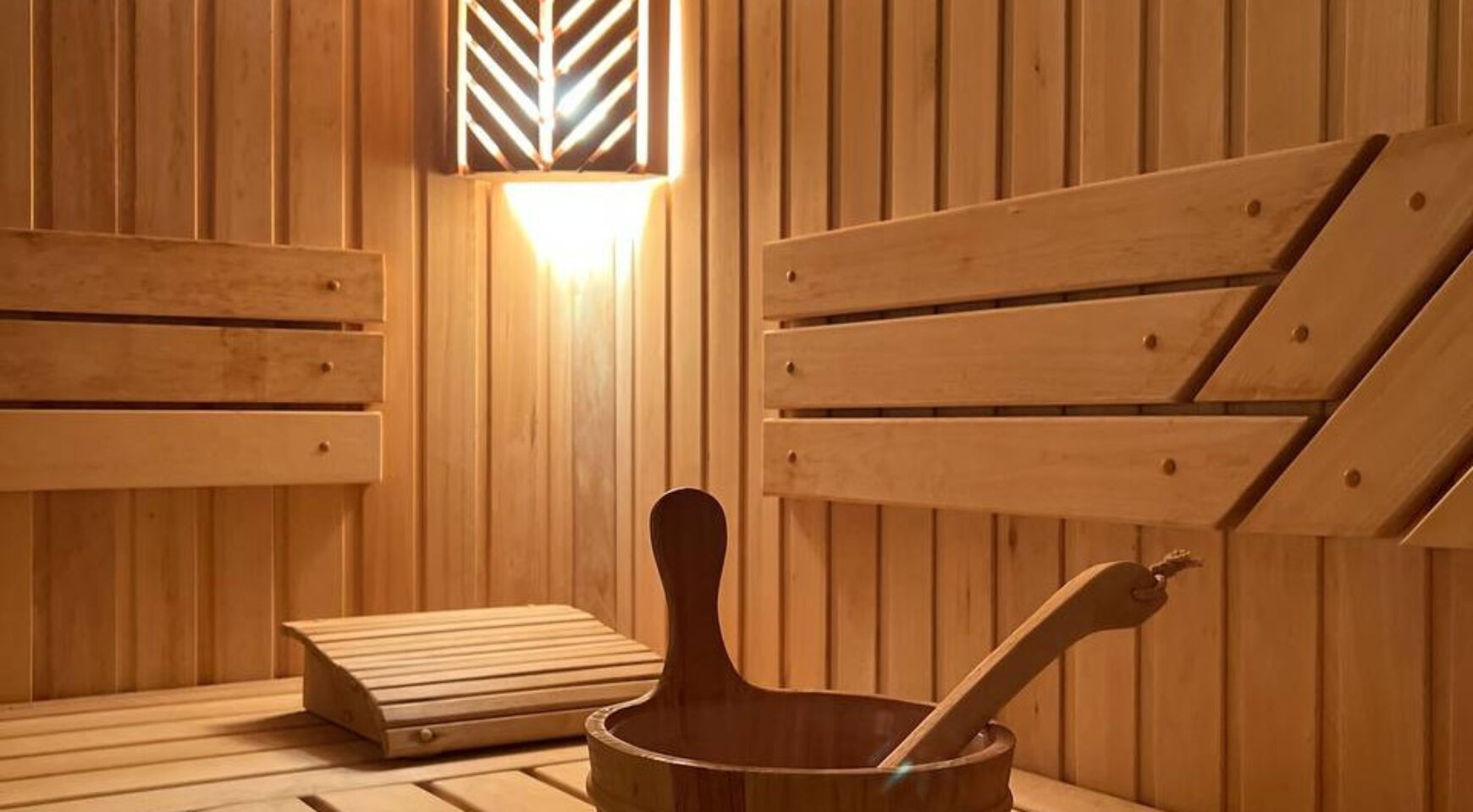 On the ground floor, you will find a spa area with a Finnish sauna, shower and a dousing bucket with cold water. The recreation area, decorated with expensive Spanish mosaics, offers coziness and relaxation, and the aspen font adds authenticity. The bathroom and shower are made using Italian tiles and plumbing, and the dousing bucket is made of mahogany.