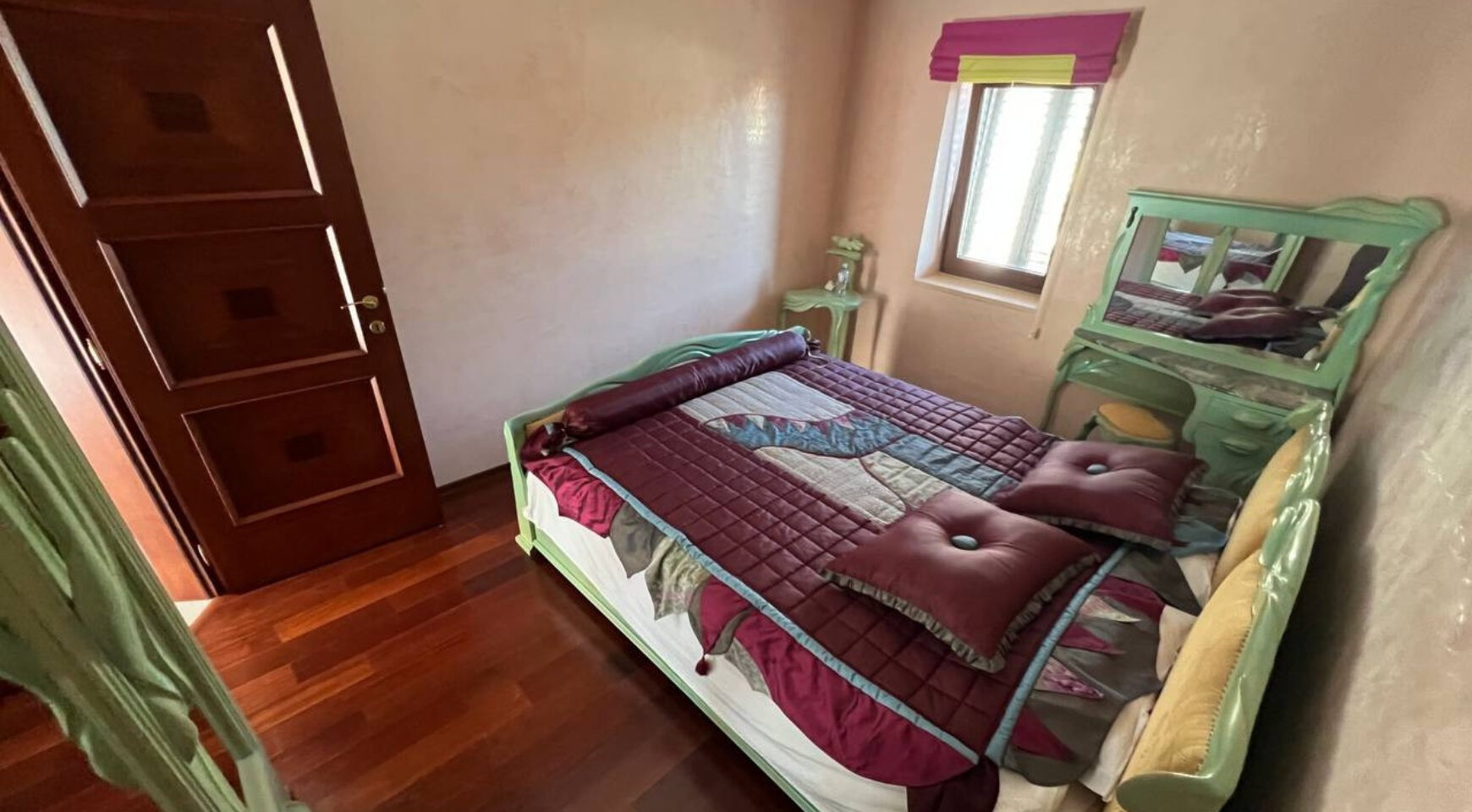 On the second floor, there are two bedrooms with exclusive solid wood furniture, a bathroom with a shower and a dressing room. The floors are covered with mahogany parquet, and the bathroom is decorated with expensive Spanish tiles and sanitary ware. For your comfort, there is underfloor heating with water and Hitachi air conditioners. Oak interior doors and Venetian plaster on the walls emphasize the sophistication of the interior.