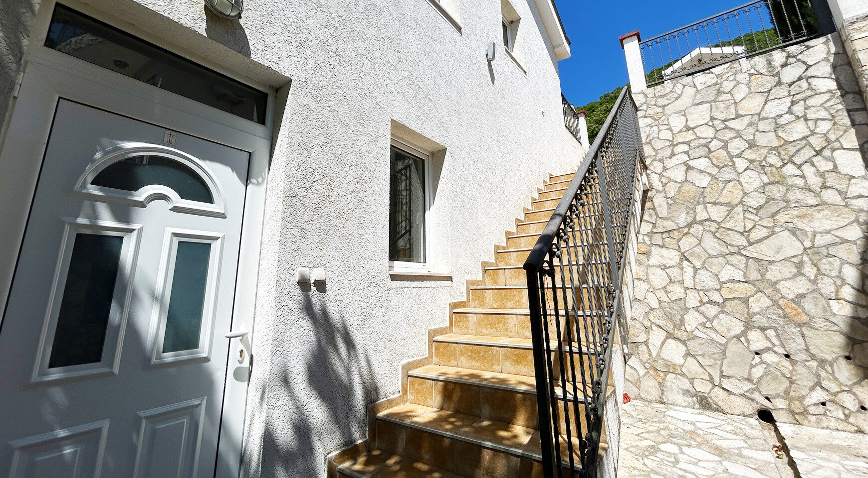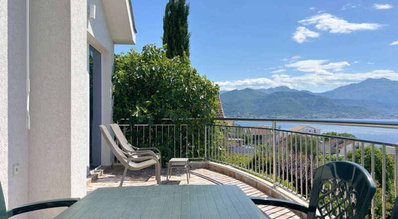 We offer for sale a modern house of 174 sq. meters with stunning panoramic views in Baosici, Herceg Novi. The house is divided into 2 apartments on floors with different entrances. 5 bedrooms: on the first floor – entrance hall, living room, kitchen, 2 bedrooms, bathroom, spacious terrace, on the second floor – entrance hall, living room, kitchen, 3 bedrooms, bathroom, spacious terrace with panoramic views.