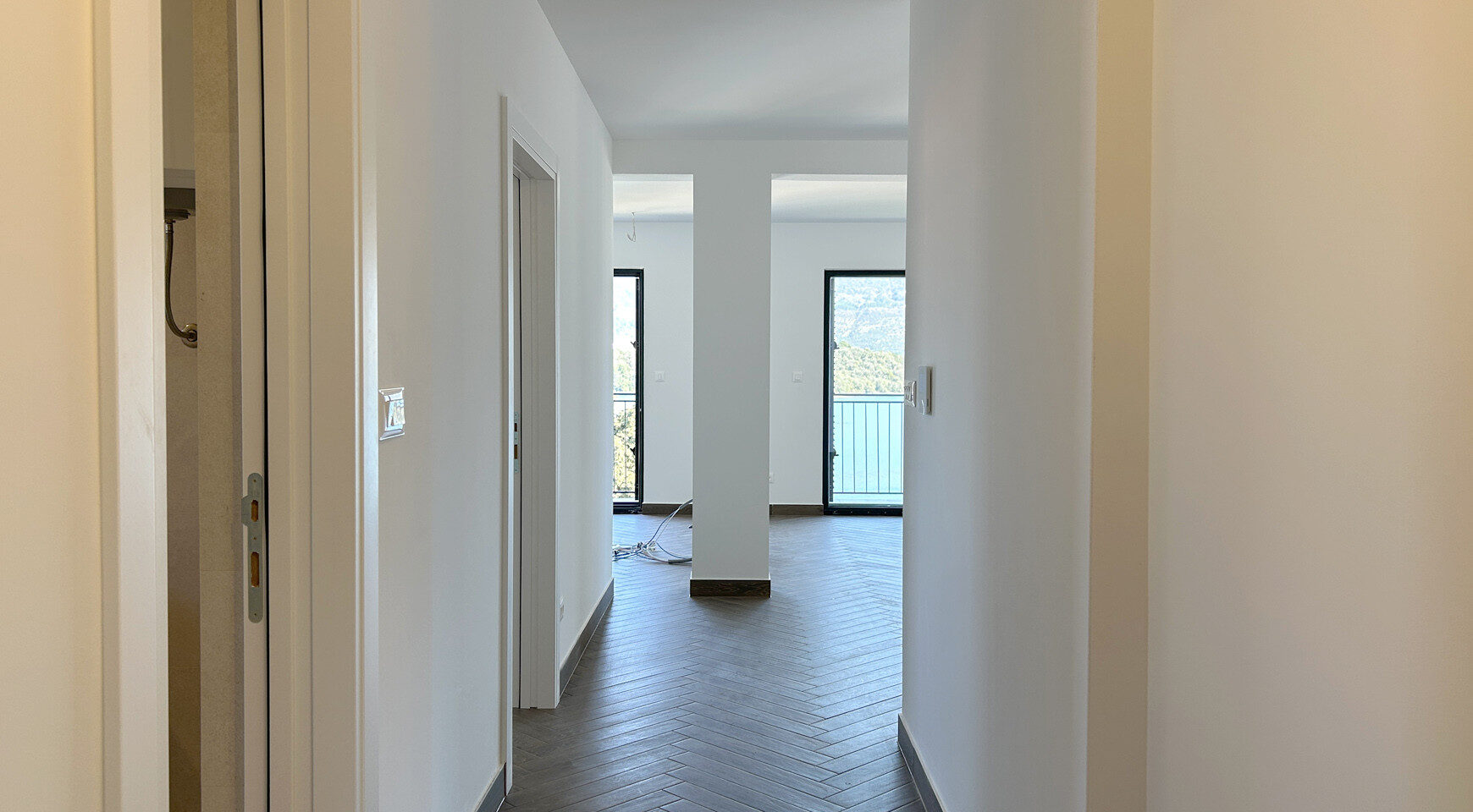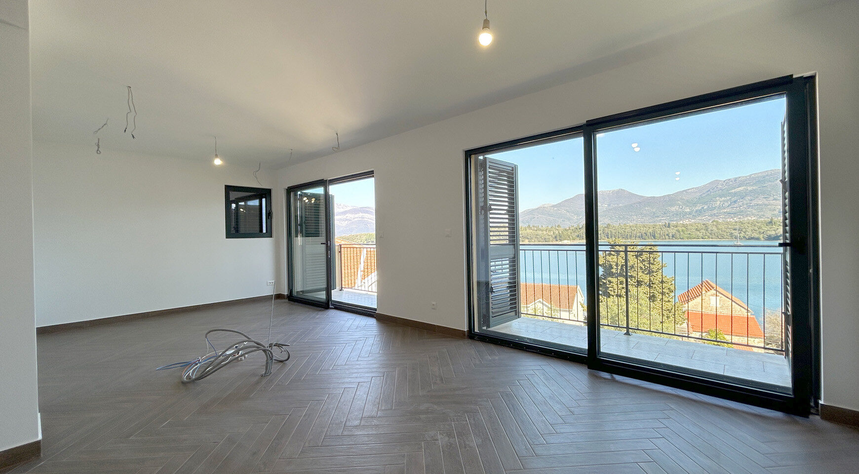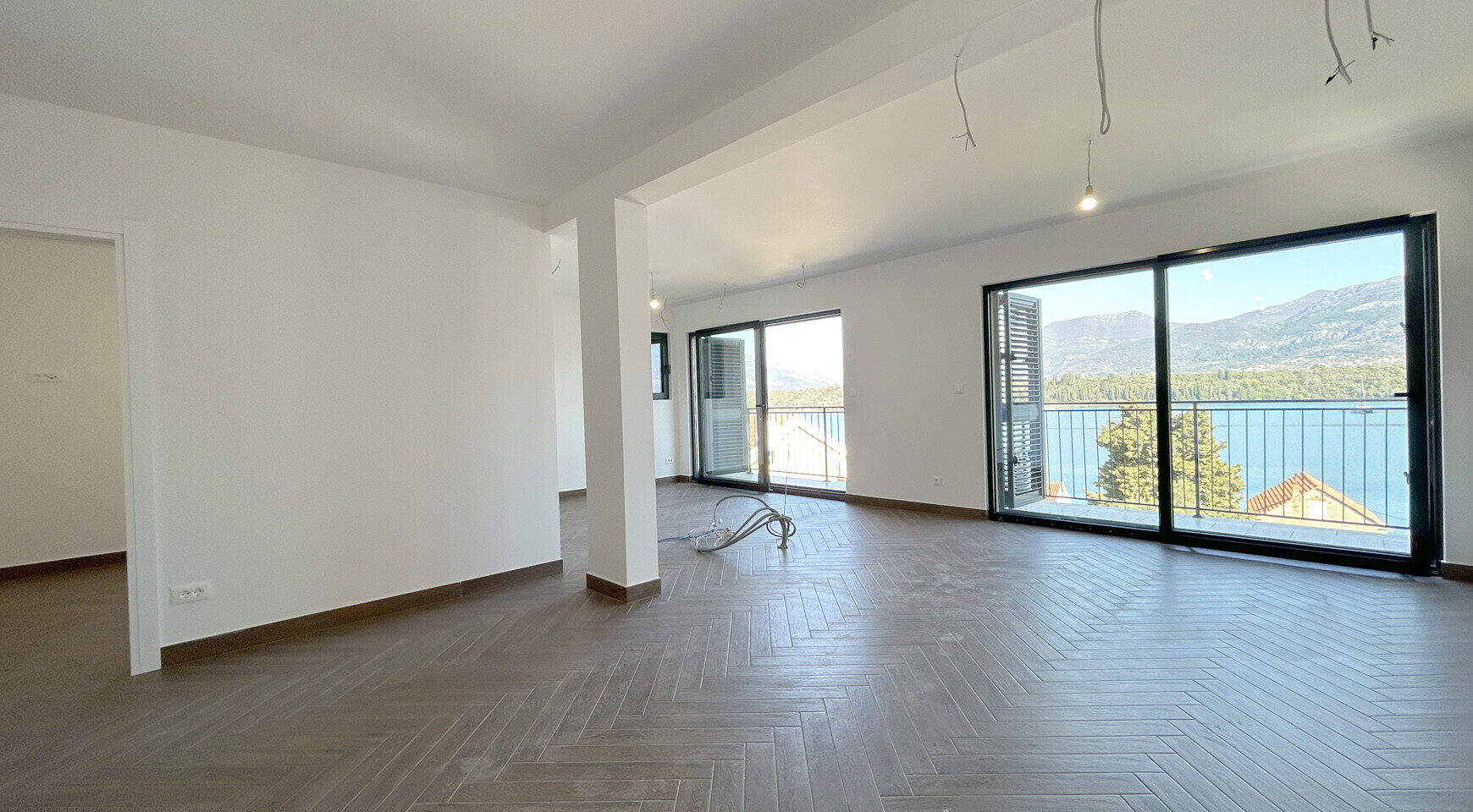 We offer for sale a three-bedroom apartment in a new building of 98 square meters in the village of Djurasevichi. It consists of a living room, three bedrooms, two bathrooms and two terraces with stunning views of the Tivat Bay. The house has a recreation area, as well as a spacious roof terrace with panoramic views. The apartment is sold in a clean finish with a complete bathroom and air conditioners.