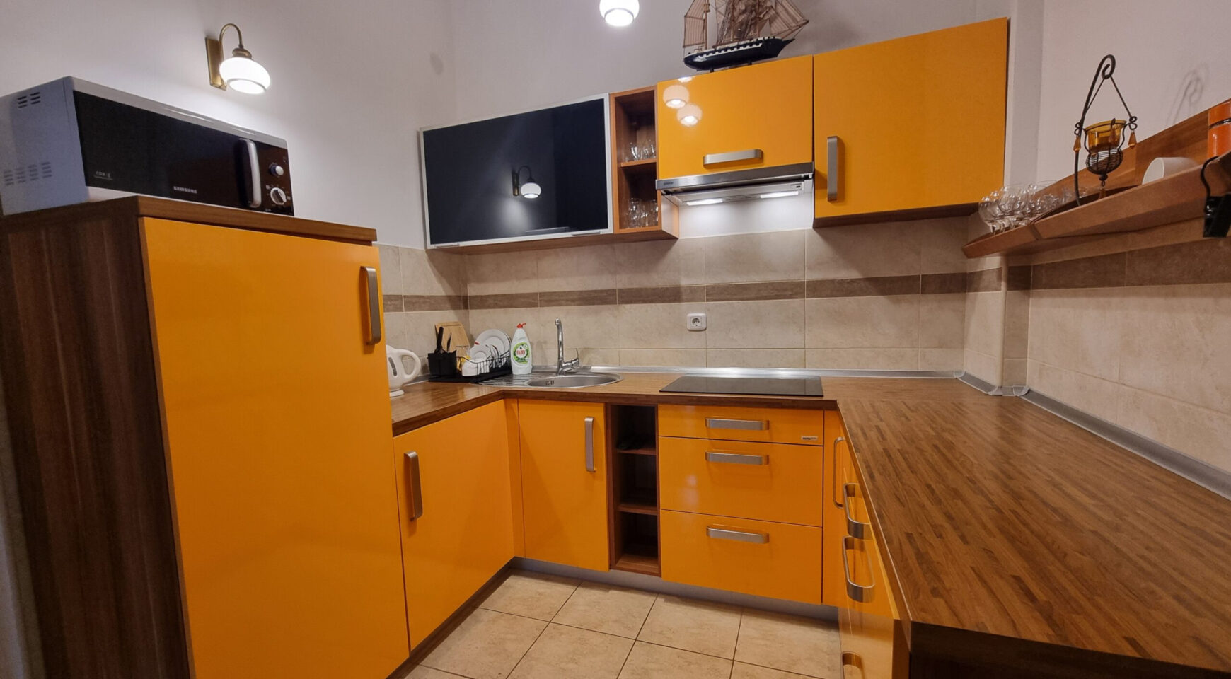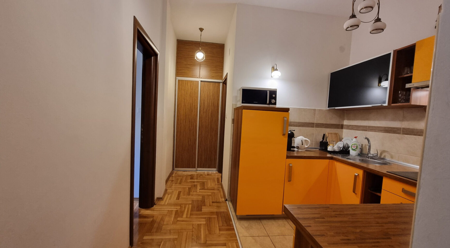 The apartment is located in a quiet area, behind the Eurostars Queen hotel. Modern building, intercom. Parking for several cars in the courtyard of the building.