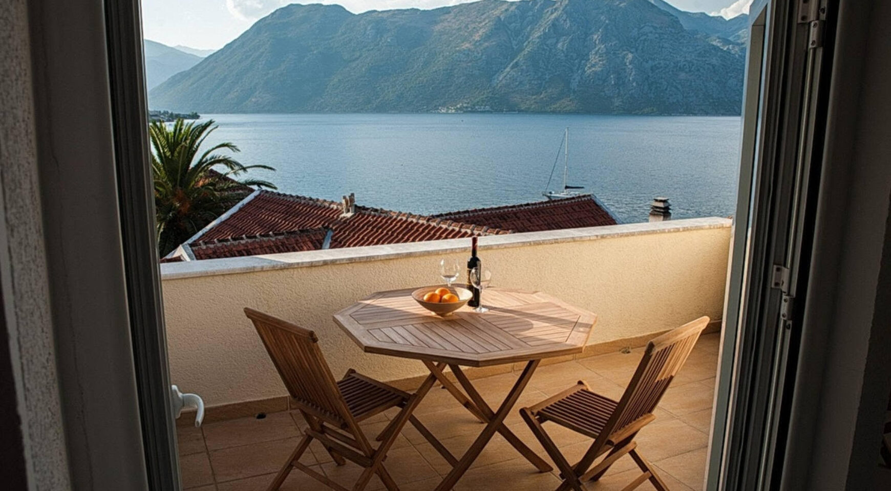 Unique offer: a nice, cozy apartment in an old mansion located right on the seashore in the village of Prcanj in the Bay of Kotor. The mansion is a restored stone villa, Palacio Villa Verona.