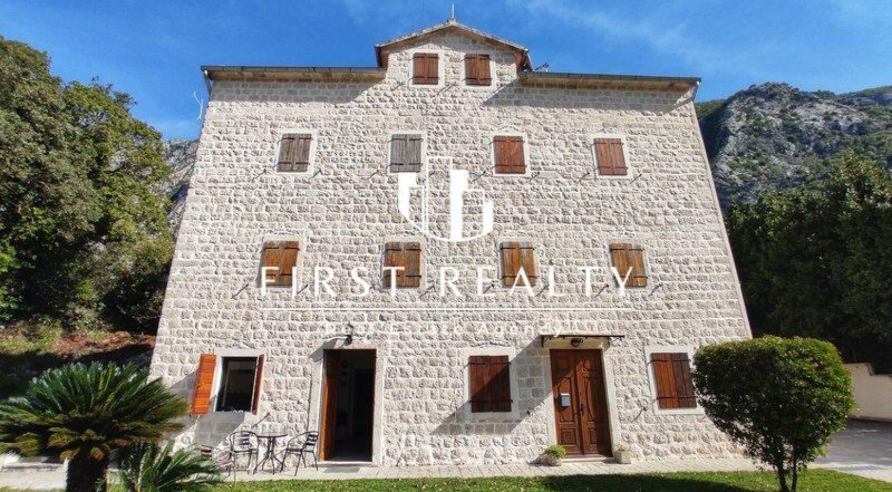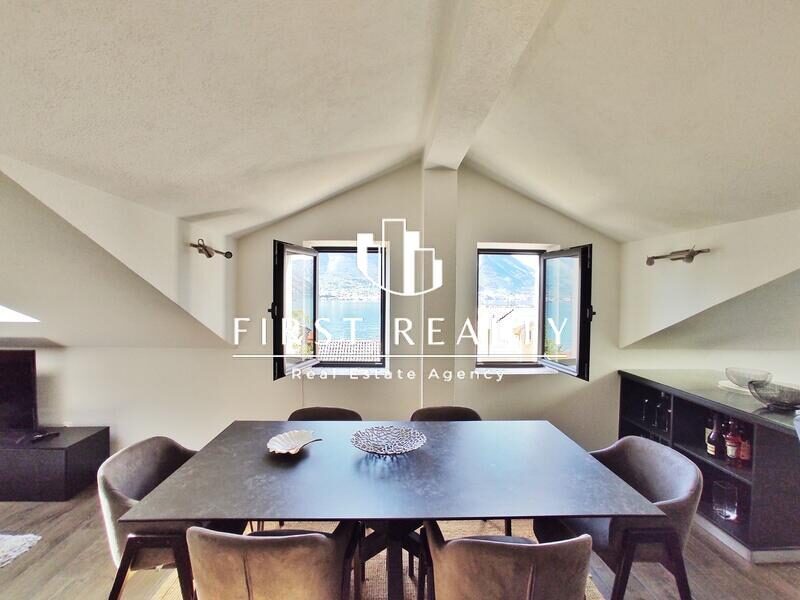 Introducing a remarkable attic apartment located in Dobrota (The Bay of Kotor), within a beautifully restored stone building. This exquisite property spans an expansive 82 square meters, offering an abundance of living space.