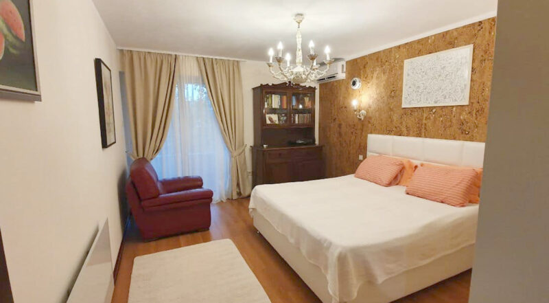 Each room has an air conditioner and a recuperative ventilation system. The apartment is equipped with all the necessary furniture and modern appliances. Some interior items are antiques. There is also a heated floor system.