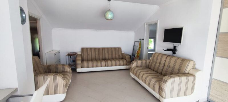 The house is located next to the road, but thanks to the garages, it is protected from noise and dust, ensuring comfort and privacy.