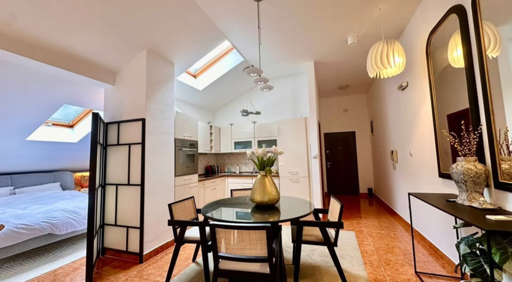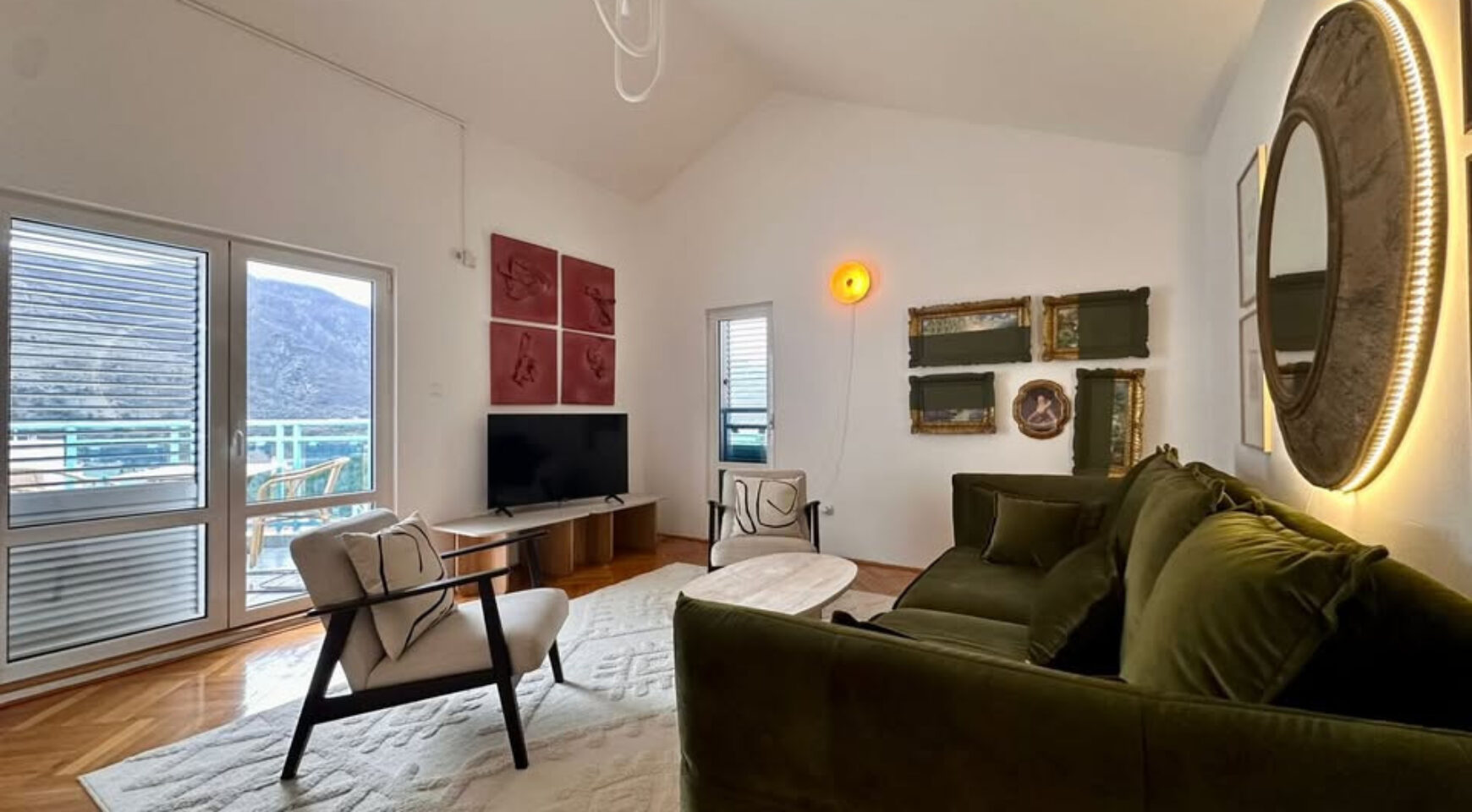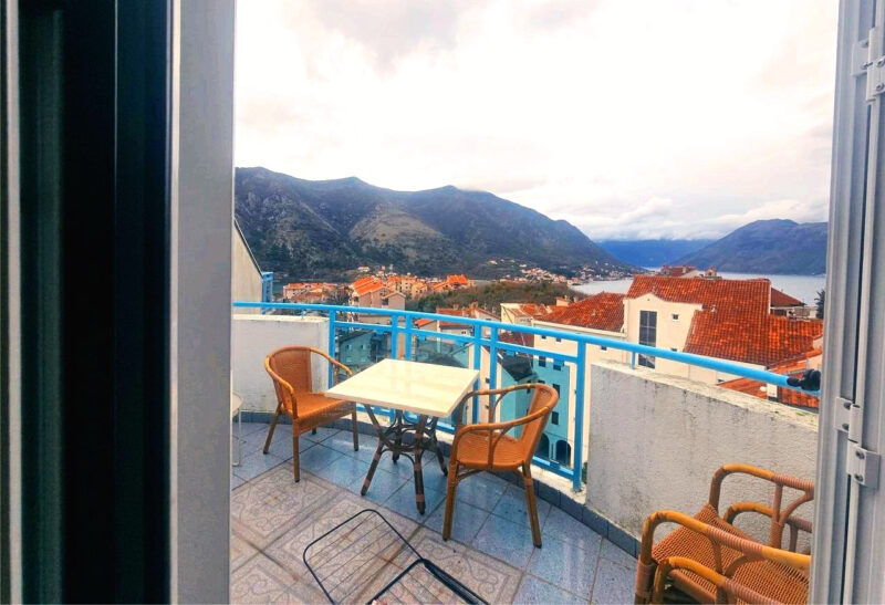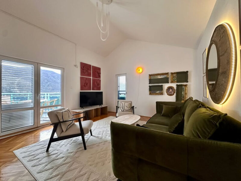 The apartment has two terraces: the front terrace offers fantastic views of the Bay of Kotor, while the rear terrace overlooks the mountains. The apartment is sold fully furnished, with all furniture new.