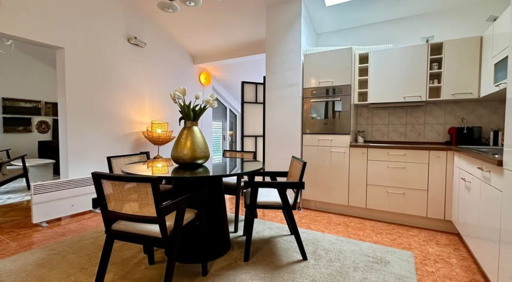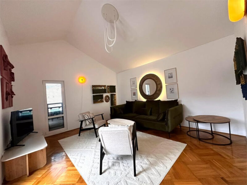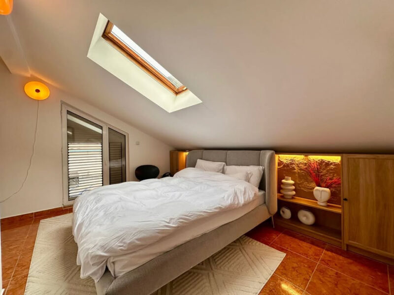 The apartment is furnished in a contemporary style, is spacious, and ideal for comfortable living in one of the sunniest villages in the Bay of Kotor. The building is constructed exclusively from high-quality building materials.