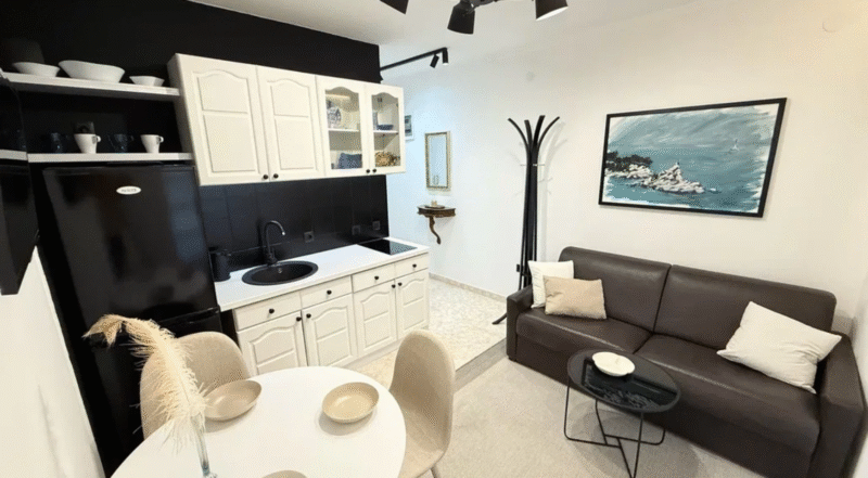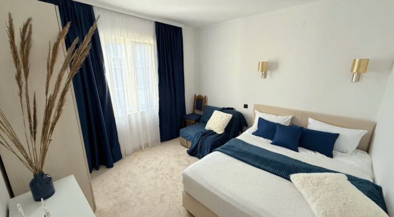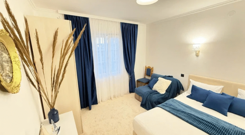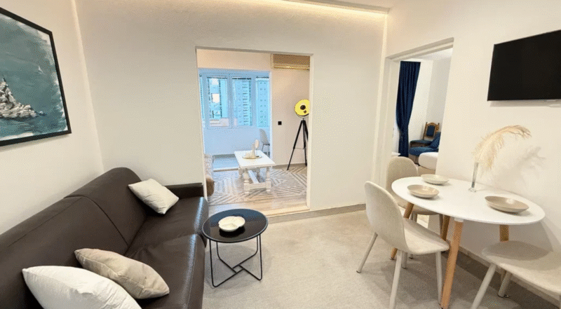 This charming apartment is located in an absolutely quiet area, where only peace and quiet reigns. At the same time, the city center can be reached in just 6 minutes at a leisurely pace, and the nearest beach is only 7-10 minutes on foot.