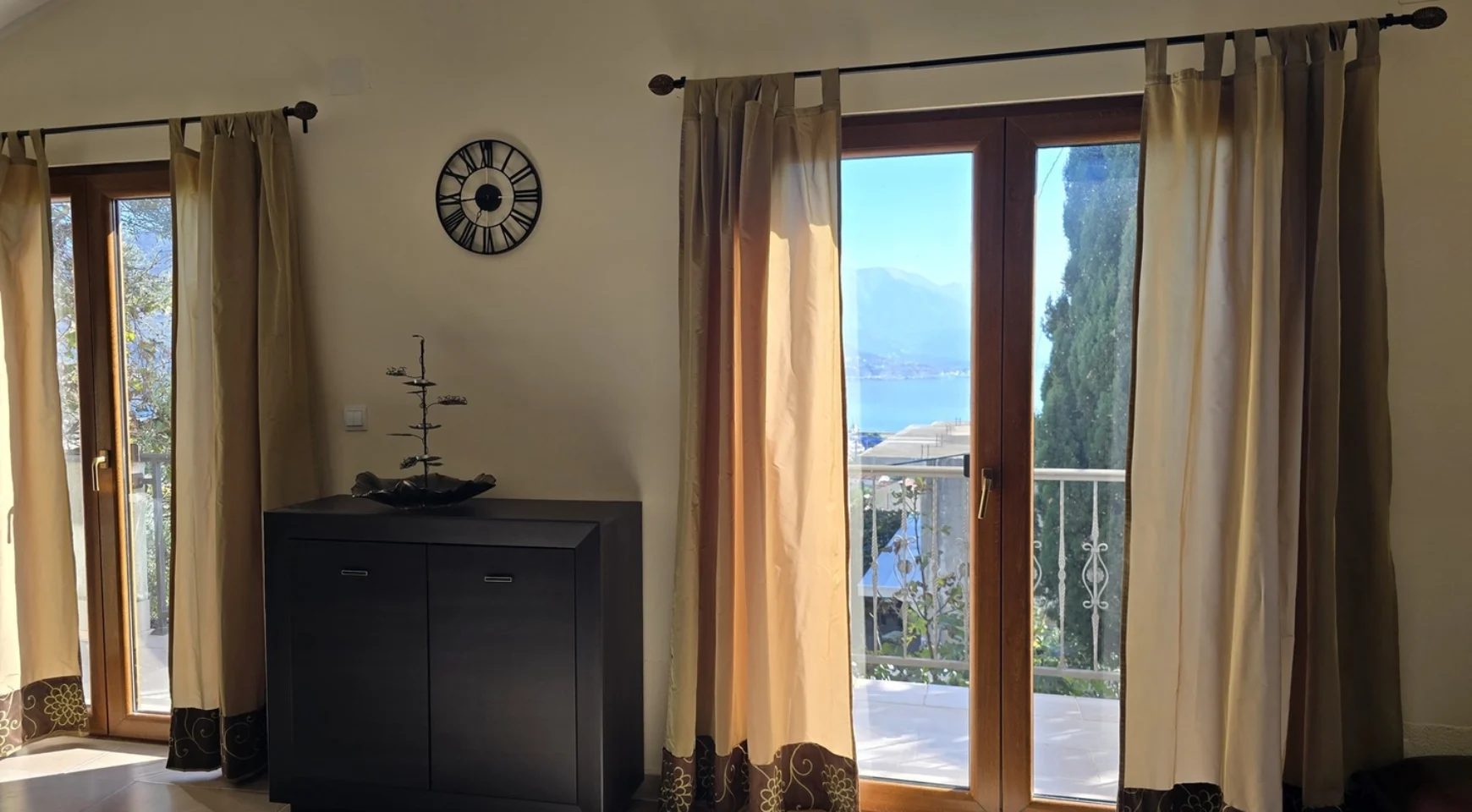 Дом состоит из двух полноценных апартаментов, каждый из которых занимает отдельный этаж. Это делает объект удобным как для проживания большой семьи, так и для сдачи в аренду. В каждом апартаменте — гостиная с кухней и столовой зоной, две спальни с собственными ванными комнатами, а также террасы с панорамным видом на море. Панорамные окна обеспечивают максимальное естественное освещение, а система подогрева пола добавляет комфорта в любое время года.