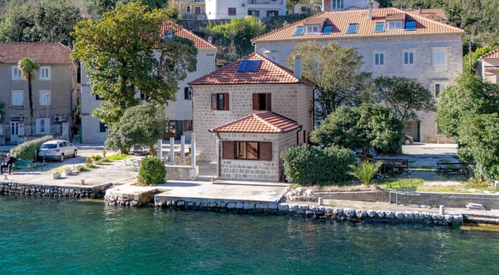 Дом полностью отремонтирован, оборудован кондиционерами и тремя системами отопления. Он расположен прямо на берегу моря, с собственным причалом и местом для швартовки лодки.