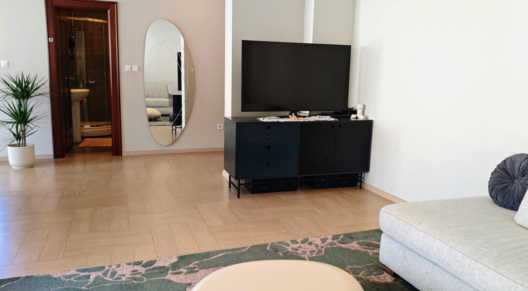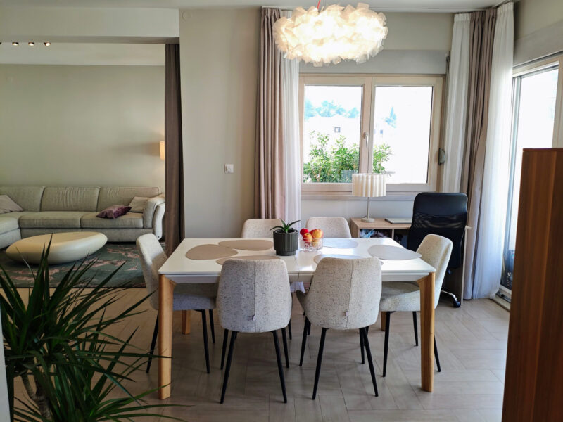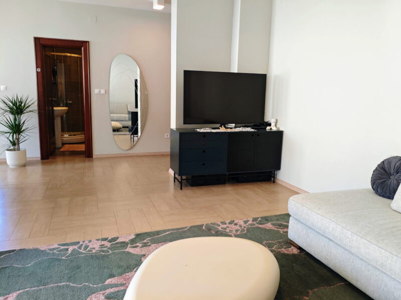 В квартире помимо трех спален, двух ванных комнат, есть большая гостиная, столовая, кухня, три большие террасы. Теплые полы с автономными термостатами — индивидуально для каждой комнаты, интернет — оптический кабель, кондиционеры, навесы.