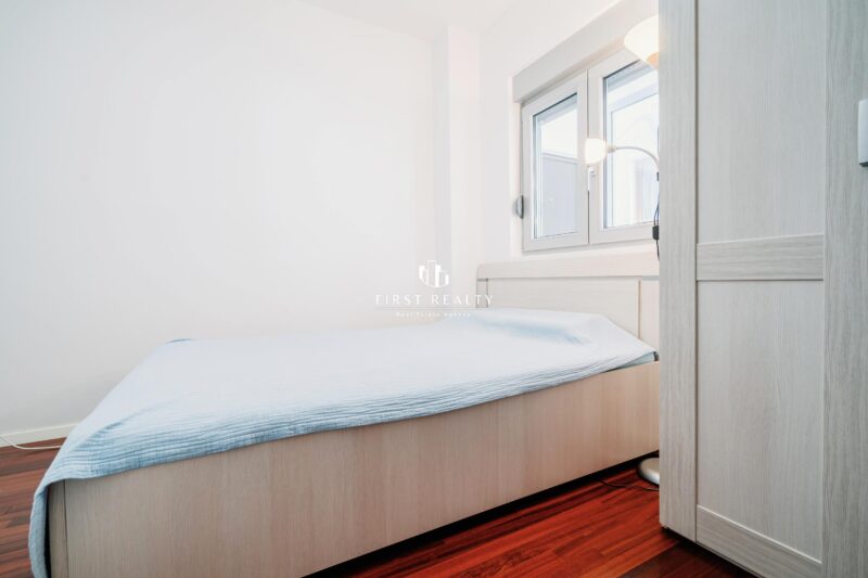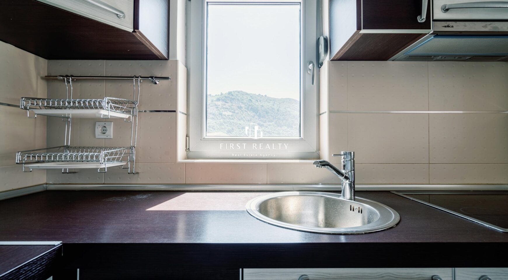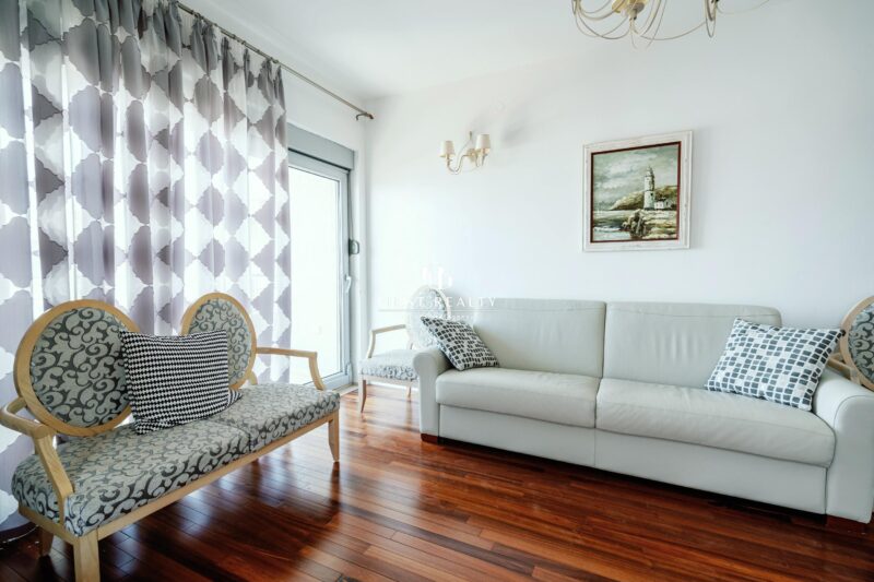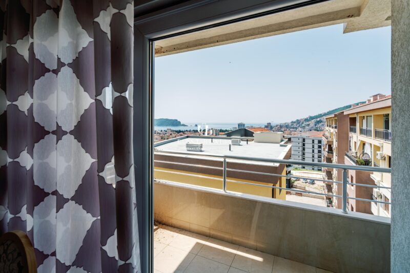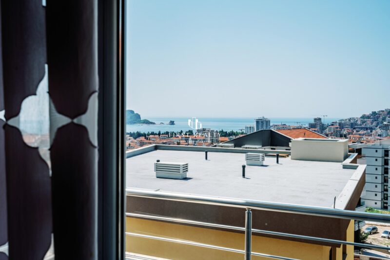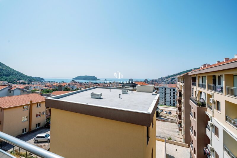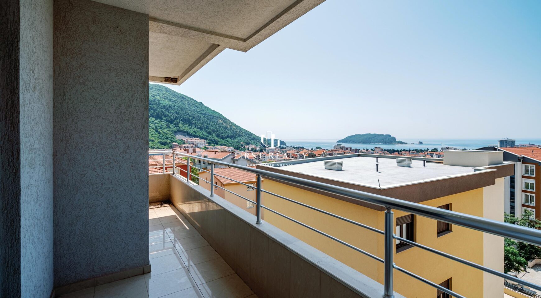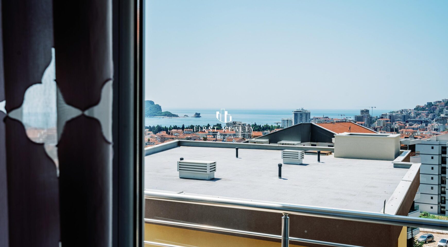 Квартира с чудесным видом на море в тихом районе Лази всего в 10 минутах пешком от центра Будвы: гостиная совмещенная с кухней, две спальни, терраса, ванная комната.
