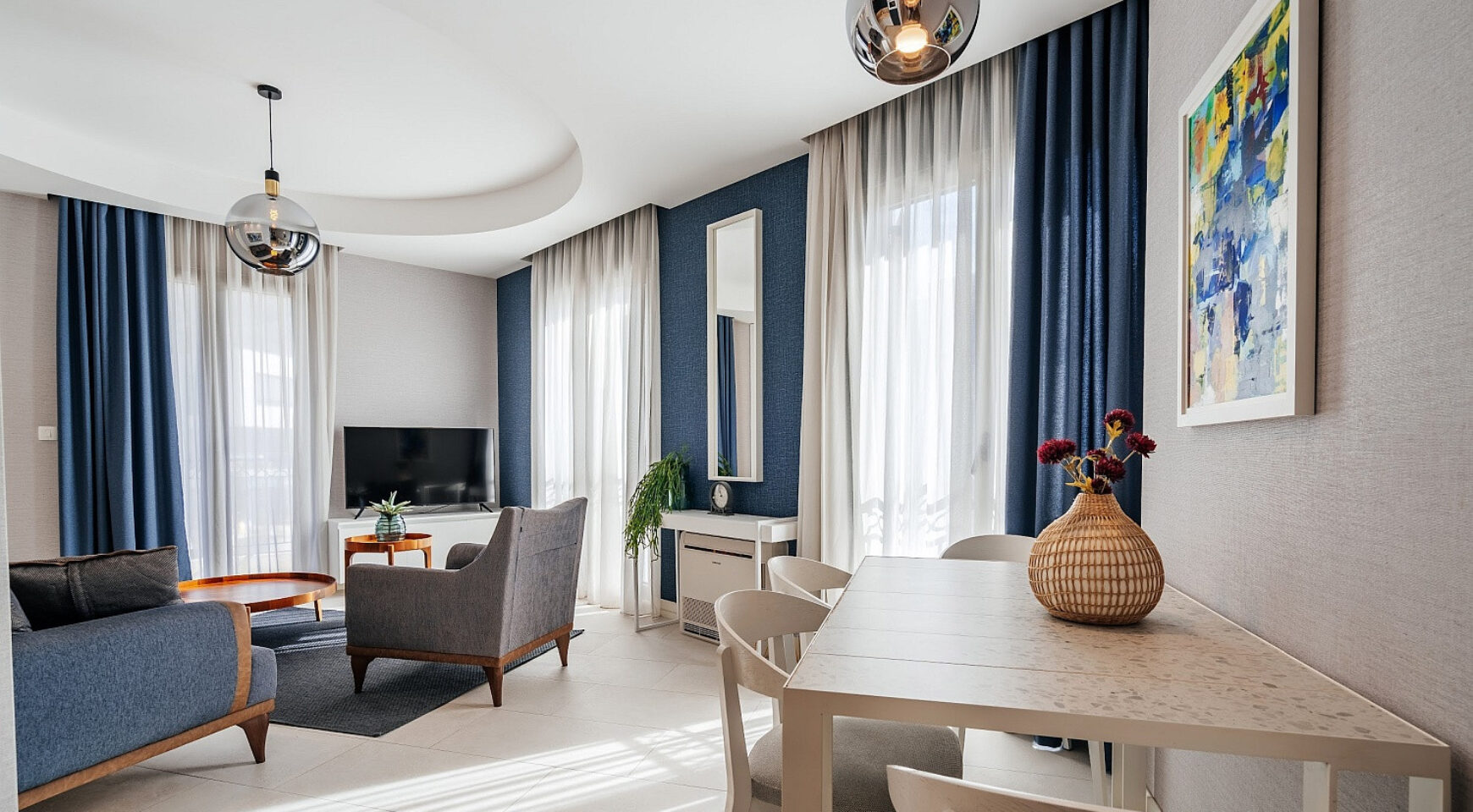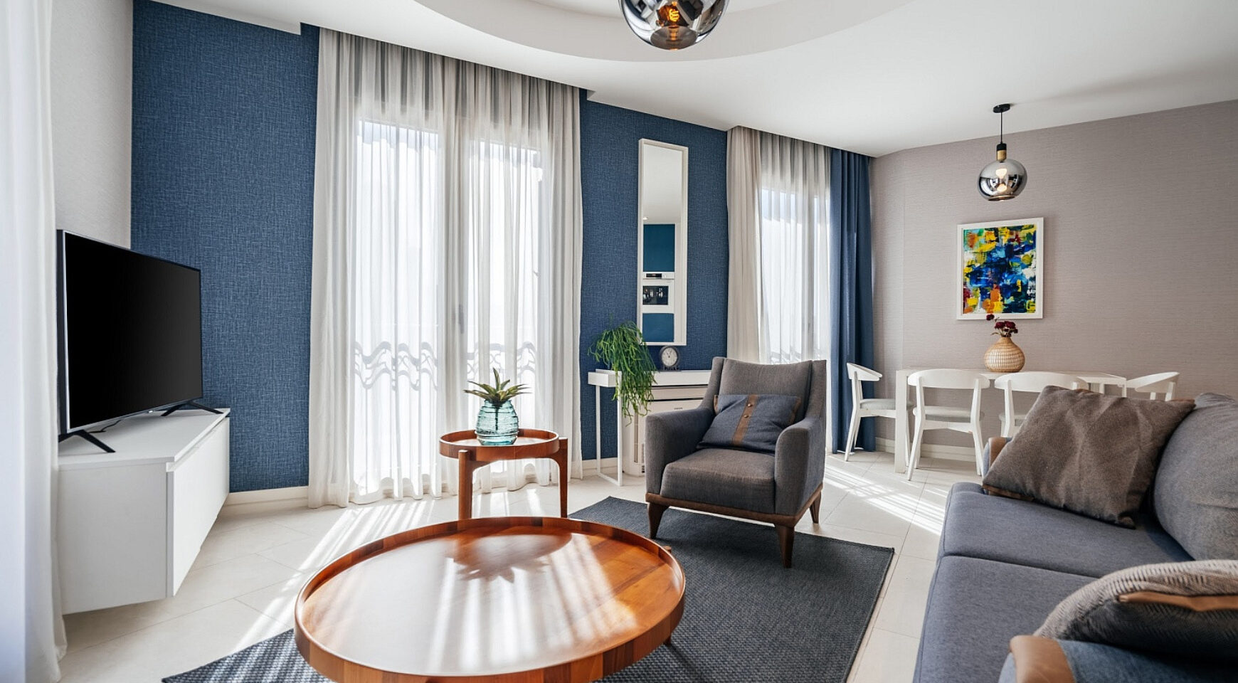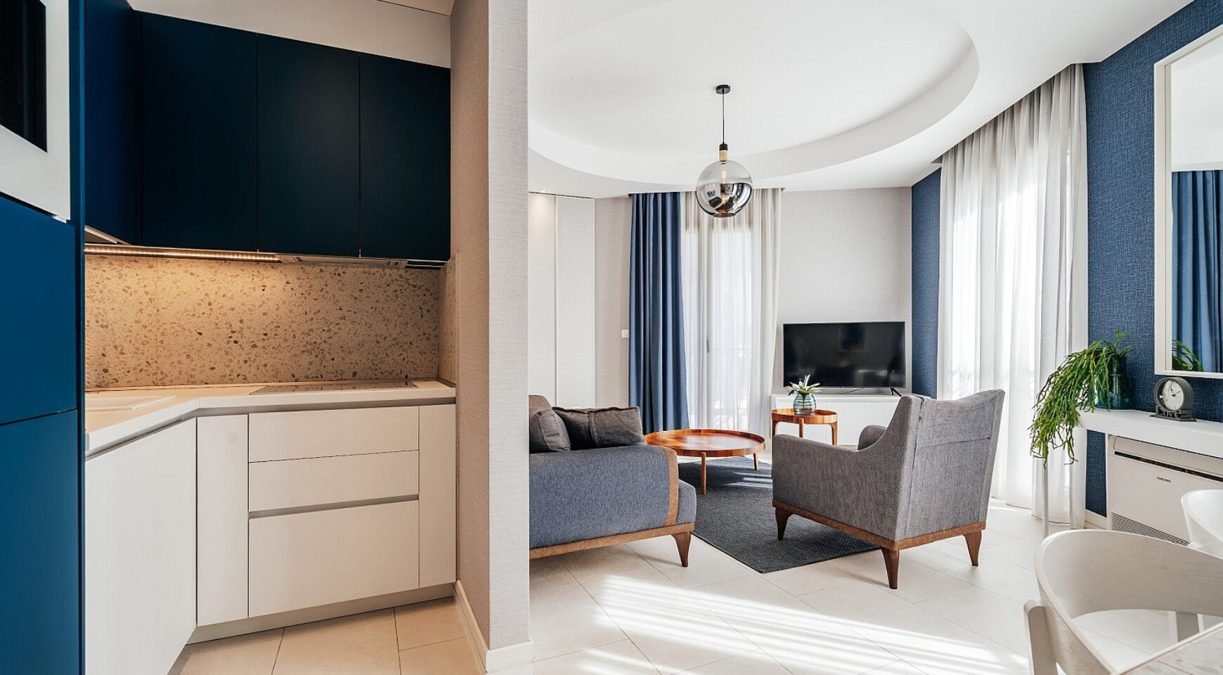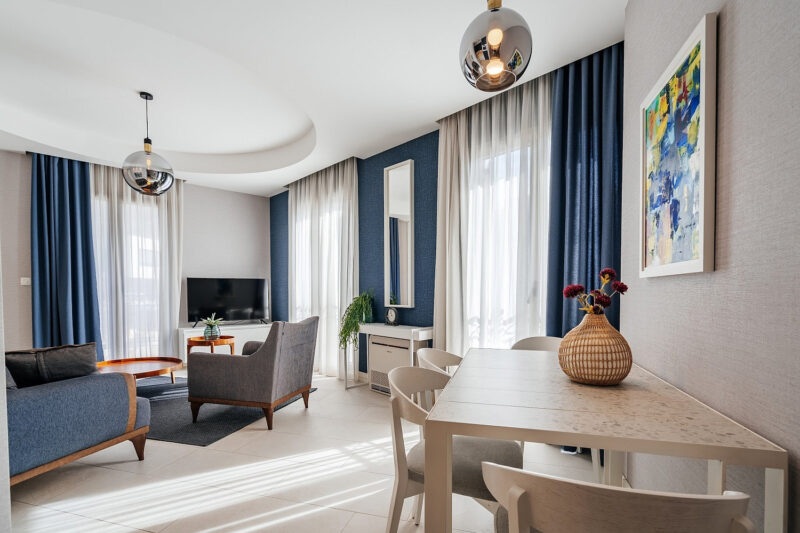 Эта квартира — удачное сочетание дизайнерского стиля, удобной планировки и уникального расположения в одном из самых востребованных районов Тивата.