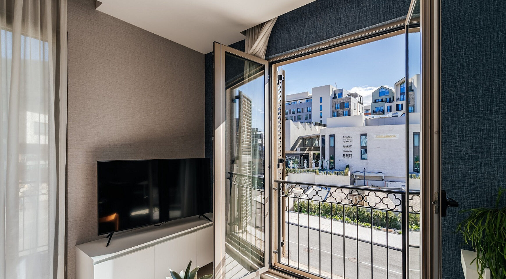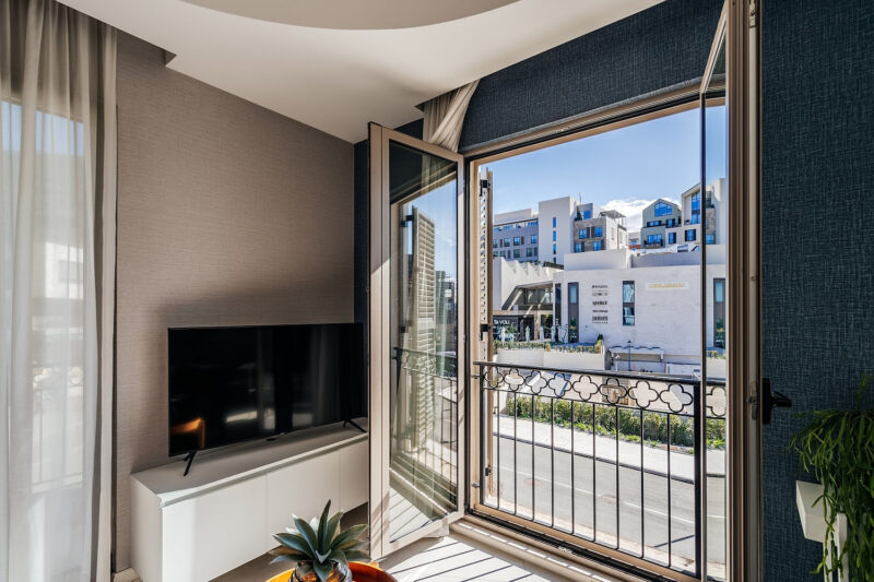 — Панорамные окна в пол по всей квартире, наполняющие пространство светом и открывающие живописный вид на горы