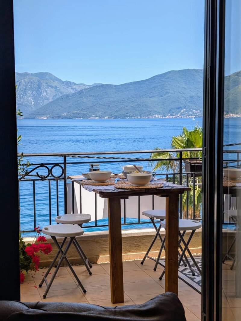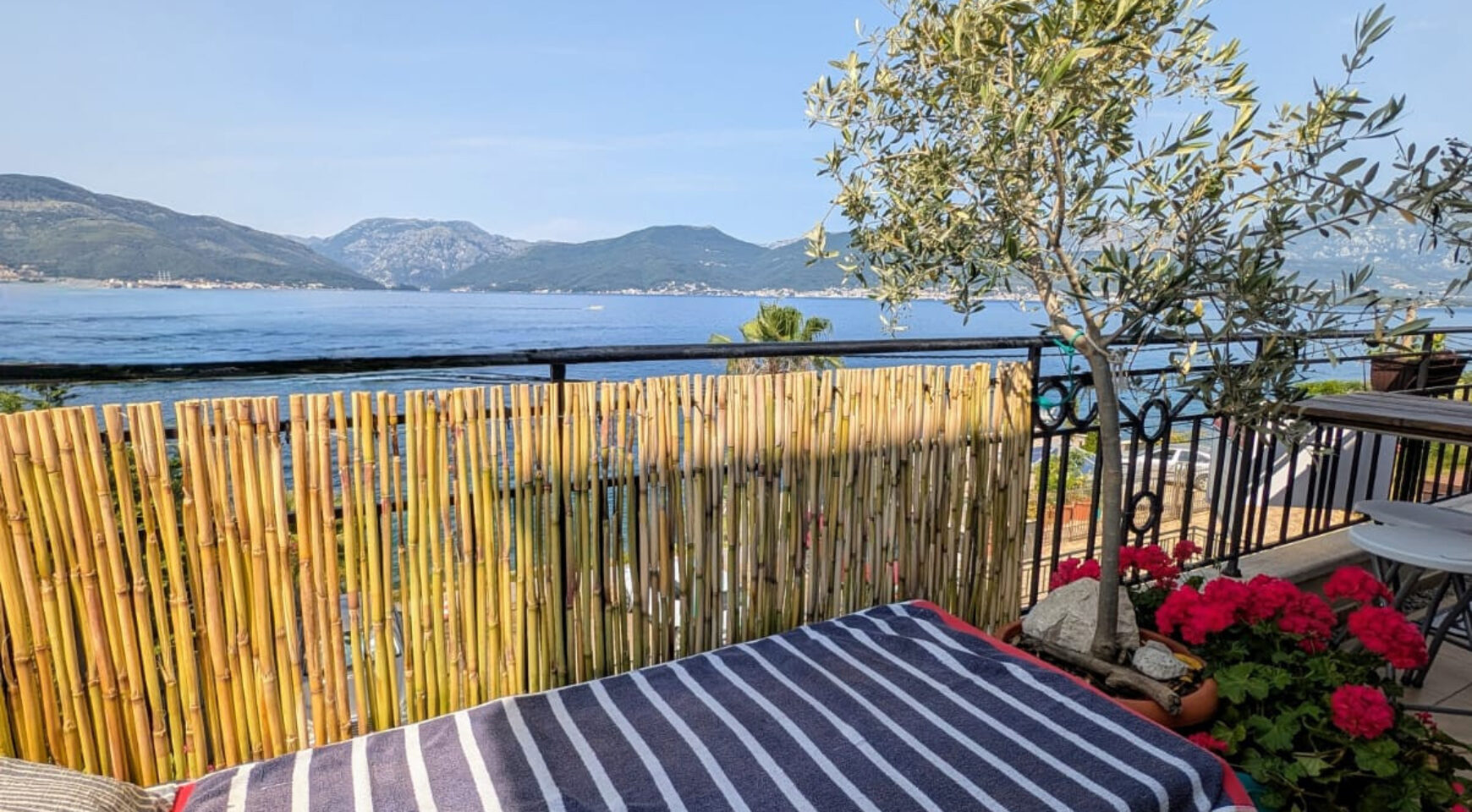 Дом расположен напротив пляжа, на верхнем этаже жилого комплекса с прямым выходом на пляж – идеальное место для принятия солнечных ванн или вечерних коктейлей с панорамным видом на Которский залив, от Порто Монтенегро до Порто Нови.