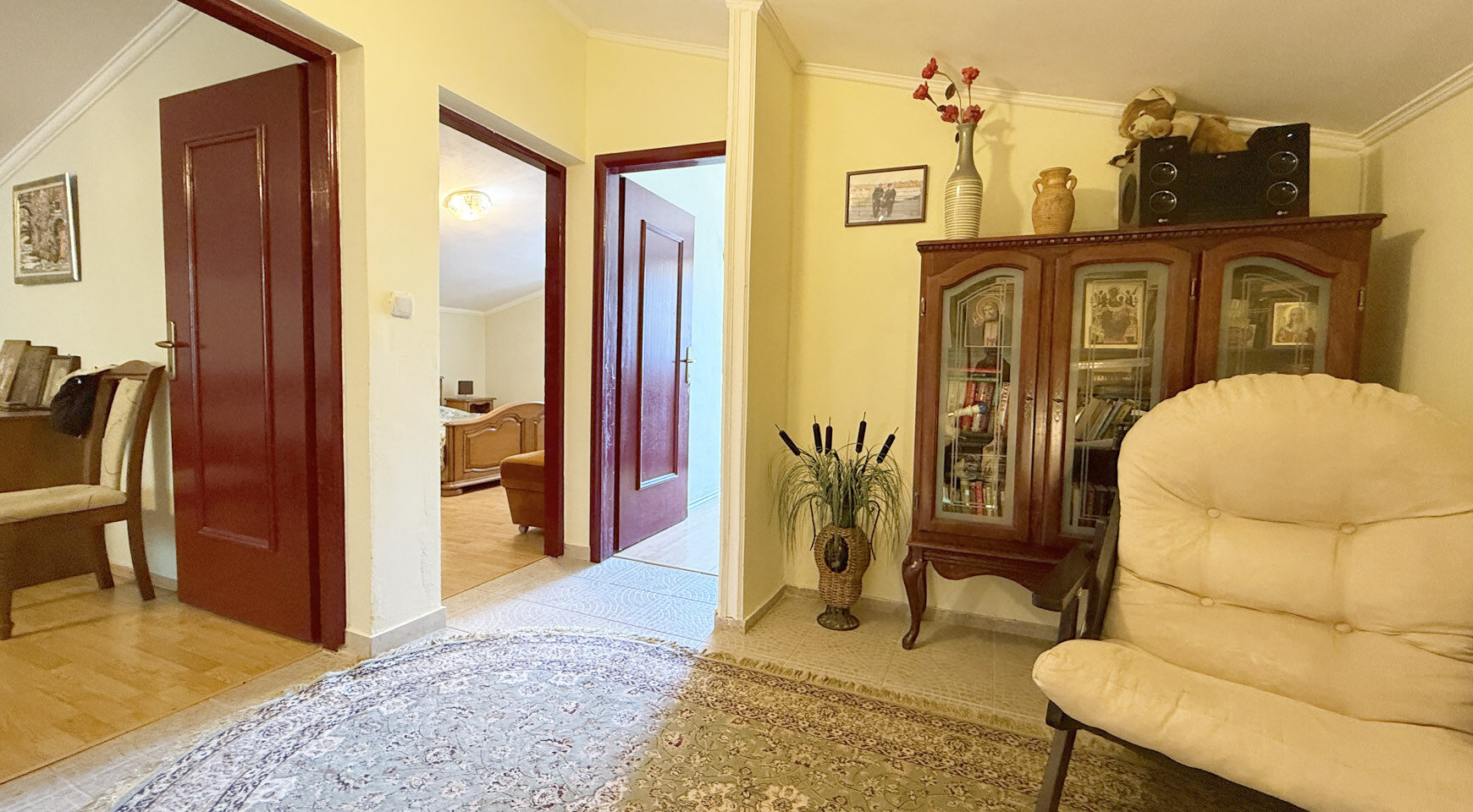 Особое внимание привлекают большая терраса и терраса на втором этаже, откуда открываются великолепные панорамные виды. На участке расположен гараж, а также установлена система отопления и солнечные батареи, которые питают бойлер с горячей водой, что обеспечивает комфорт и энергоэффективность круглый год.