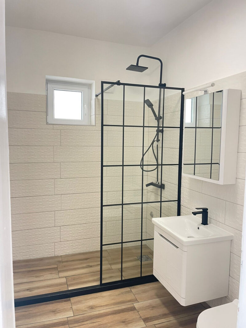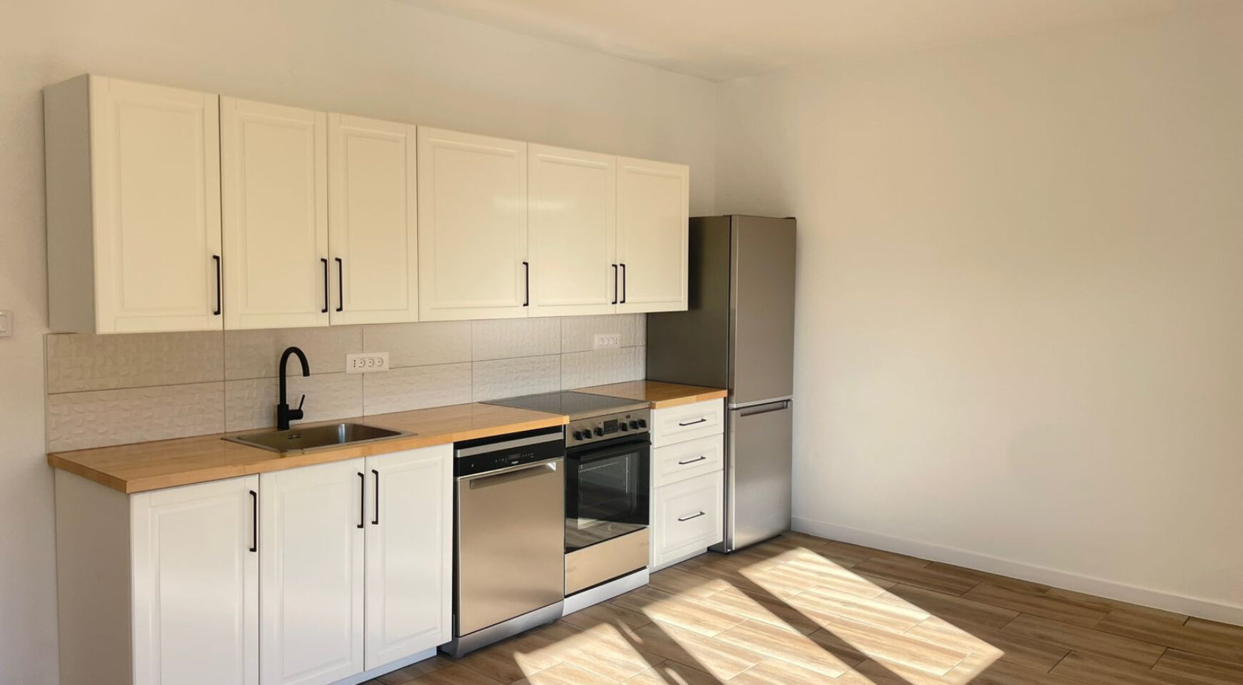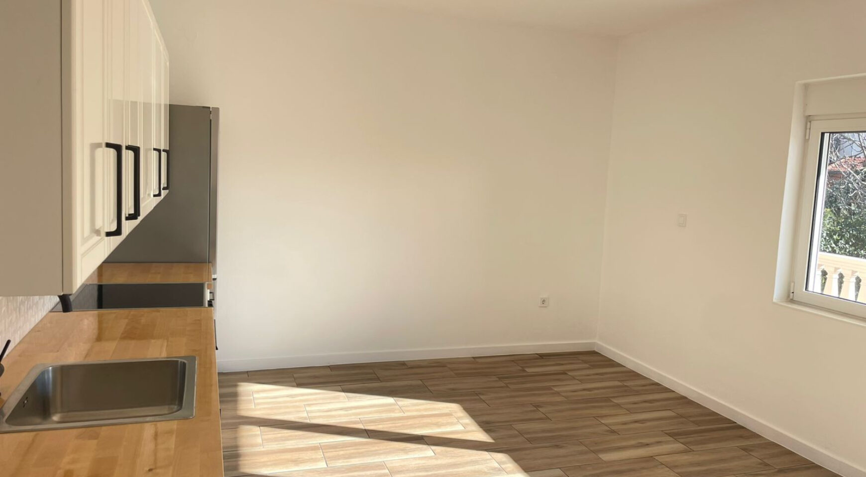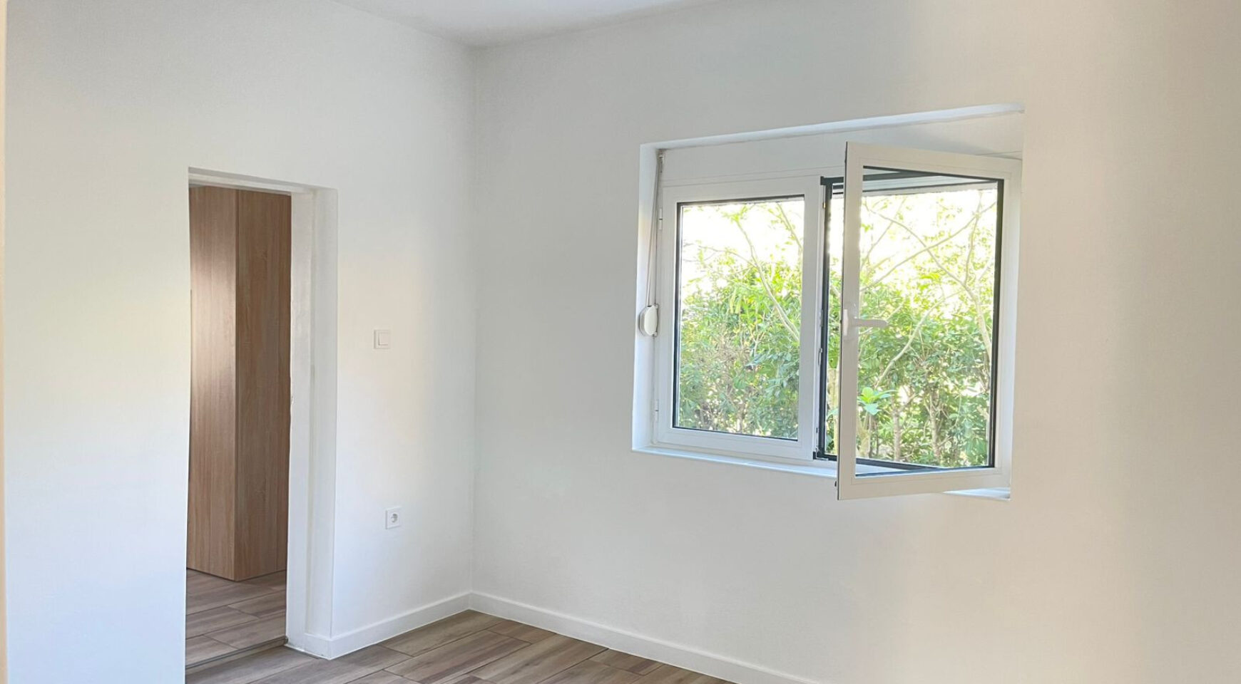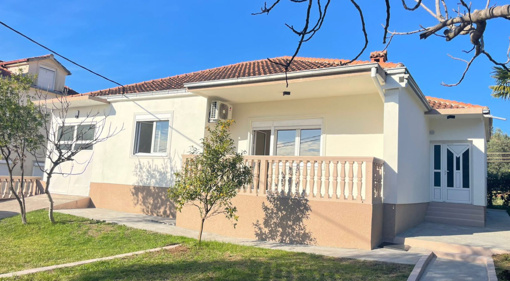 Предлагаем полностью отремонтированный дом площадью 118 кв метров на участке 425 кв метров в Тивате. Одноэтажный дом также имеет гараж площадью 24 кв метра и балкон 10 кв метров.