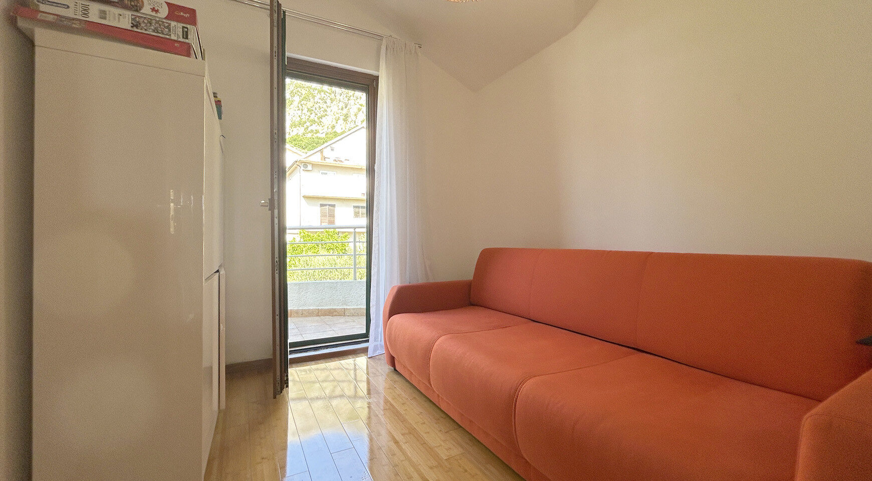 Prostran stan od 127 kvadratnih metara nalazi se u uređenom kompleksu sa bazenom u istorijskom gradu Risan – u srcu slikovitog Bokokotorskog zaliva. Idealna opcija za one koji traže udoban smeštaj pored mora, okruženi prirodom u osami u razvojnom području.