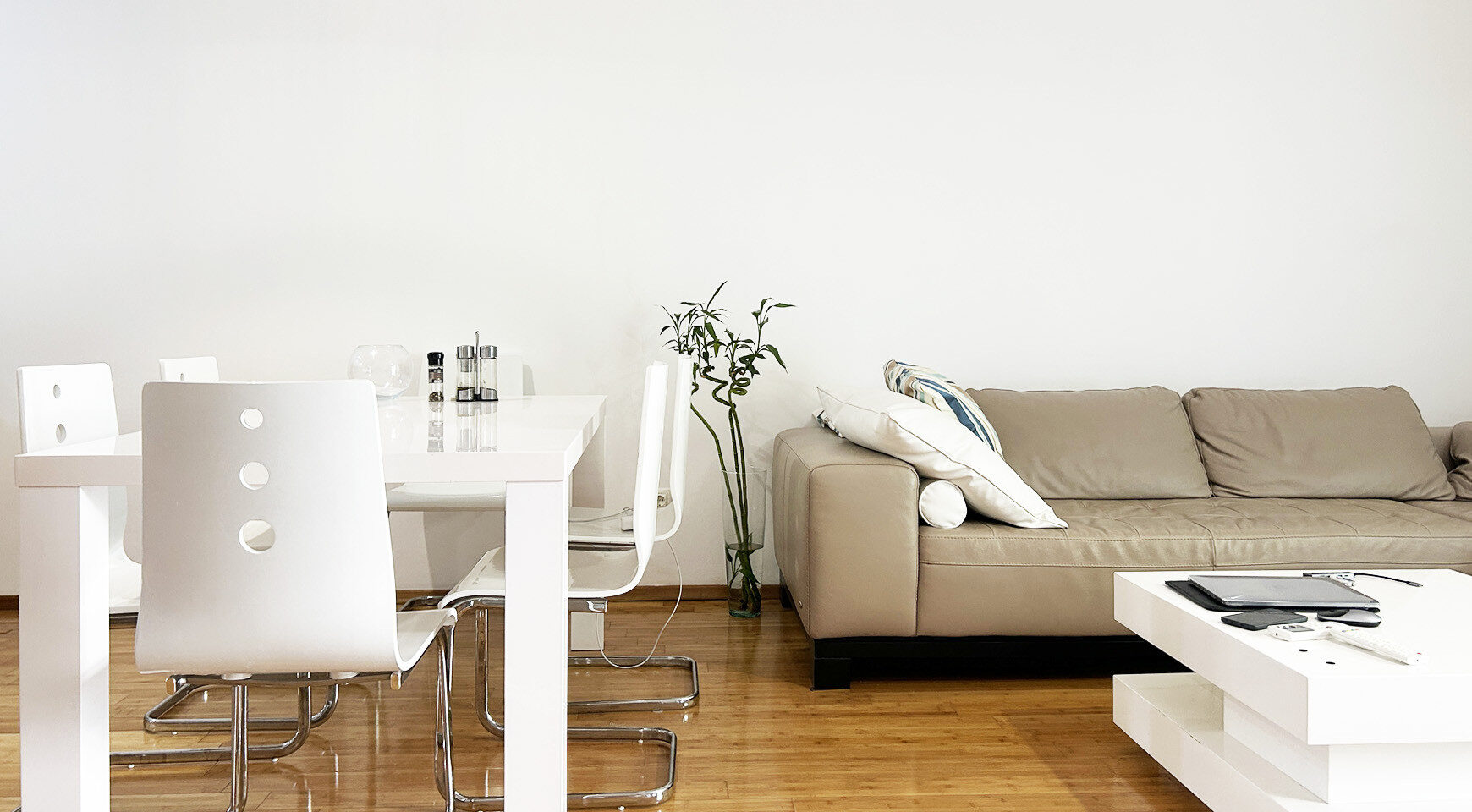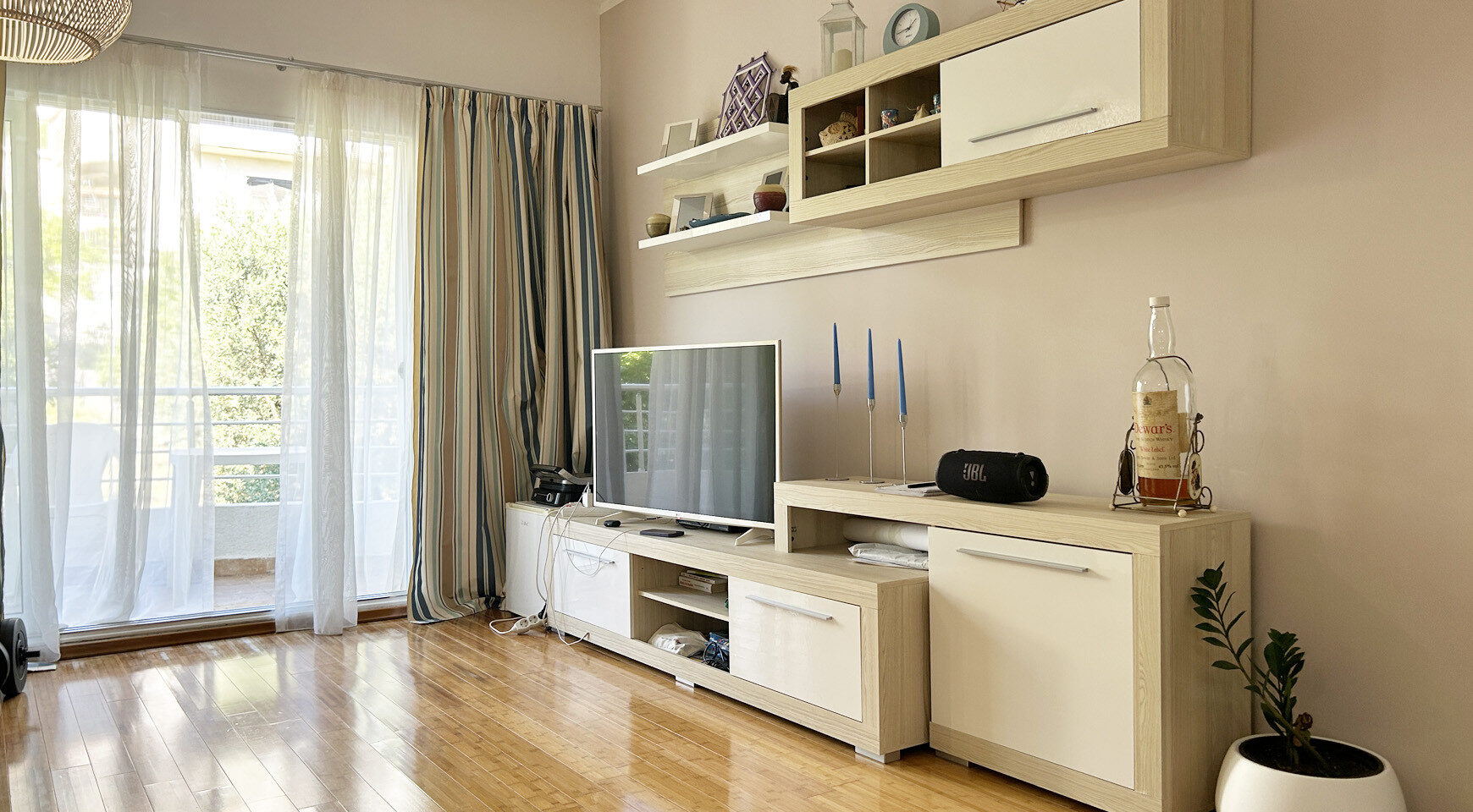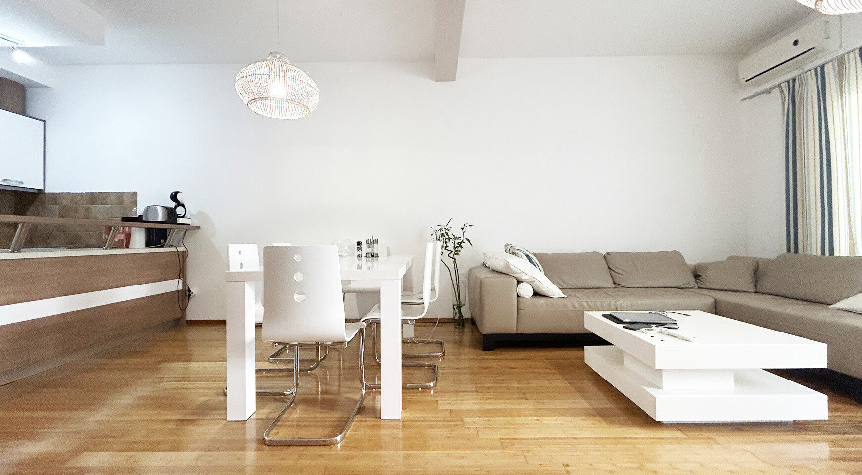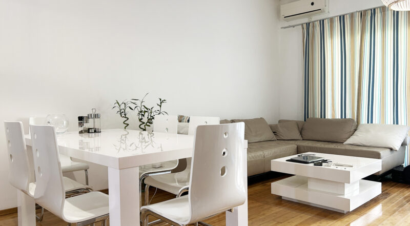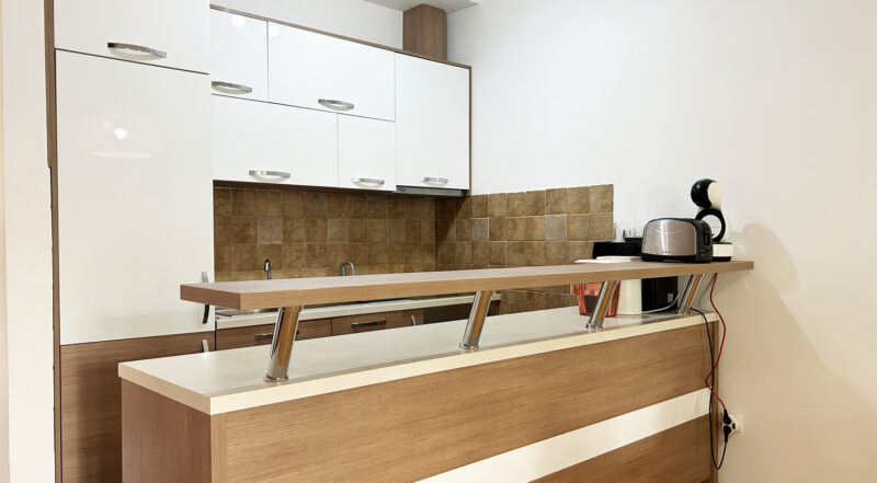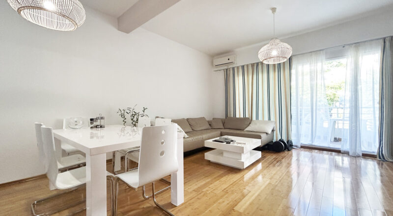 Stan je potpuno namešten i opremljen kućnim aparatima. Enterijer je urađen korišćenjem visokokvalitetnih prirodnih materijala. Do mora i prve linije – 100 metara.