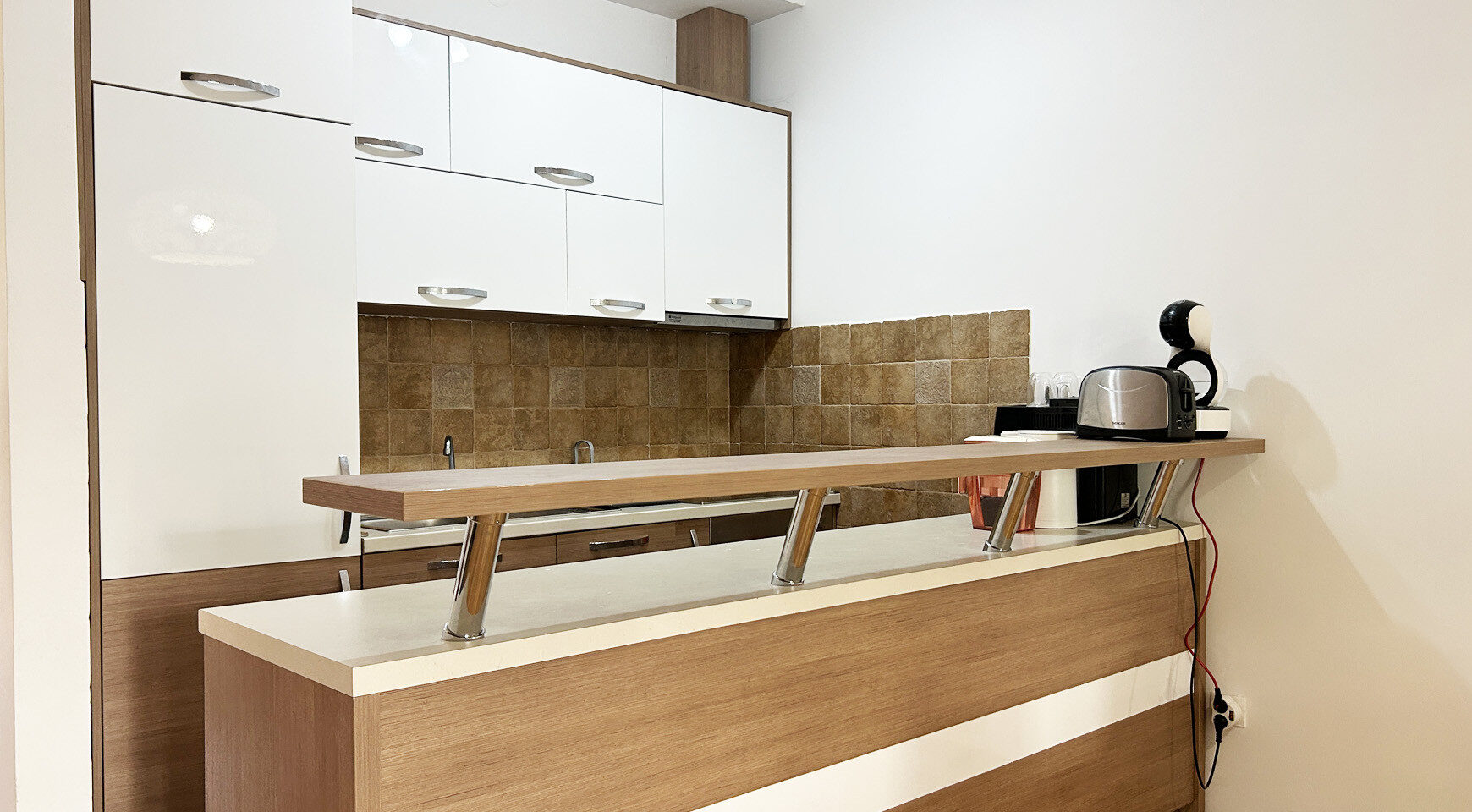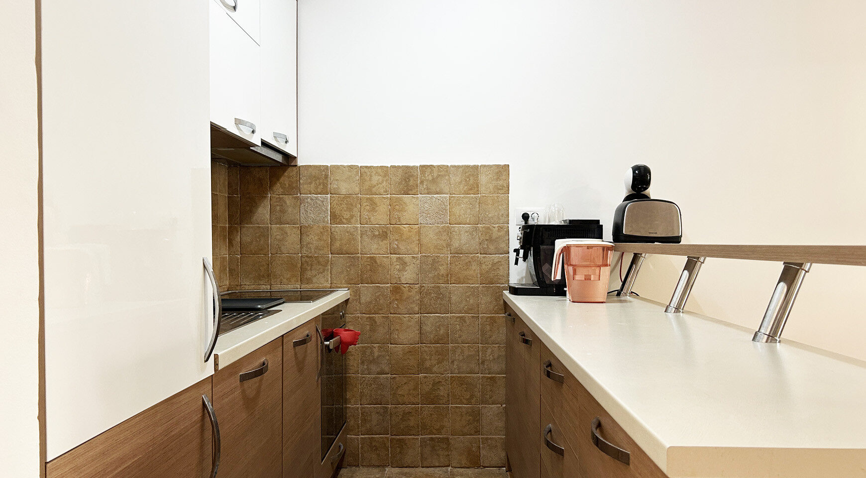Na prvom nivou stana nalazi se prostrana dnevna soba sa kuhinjskim delom, kupatilom i terasom.