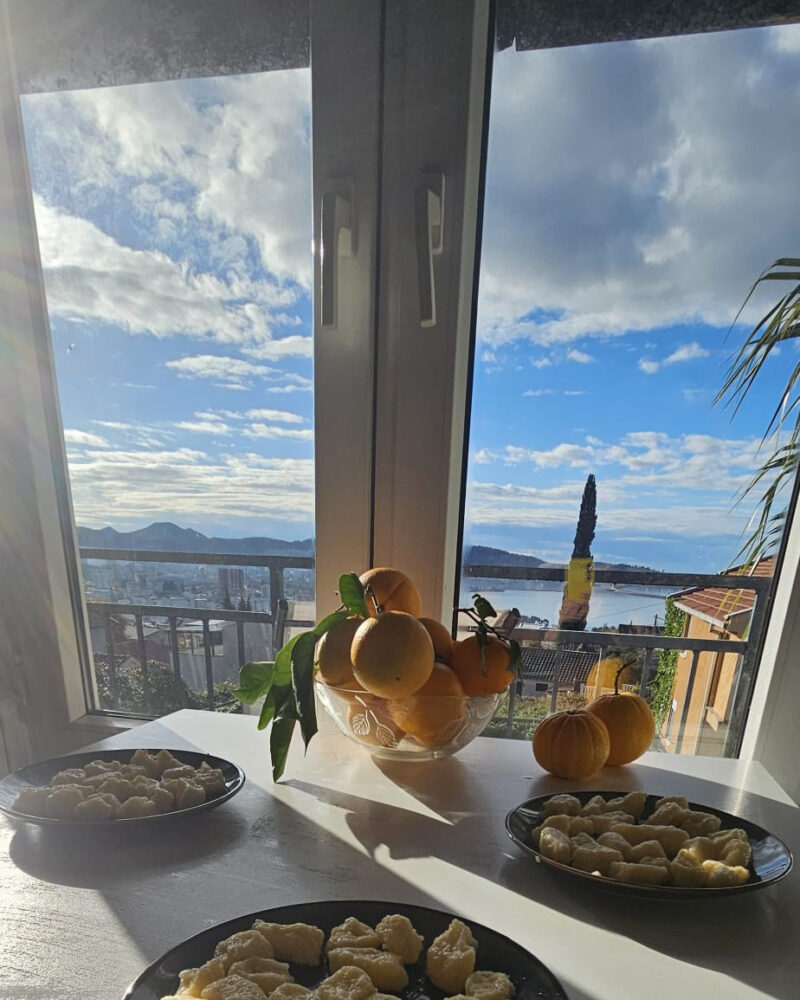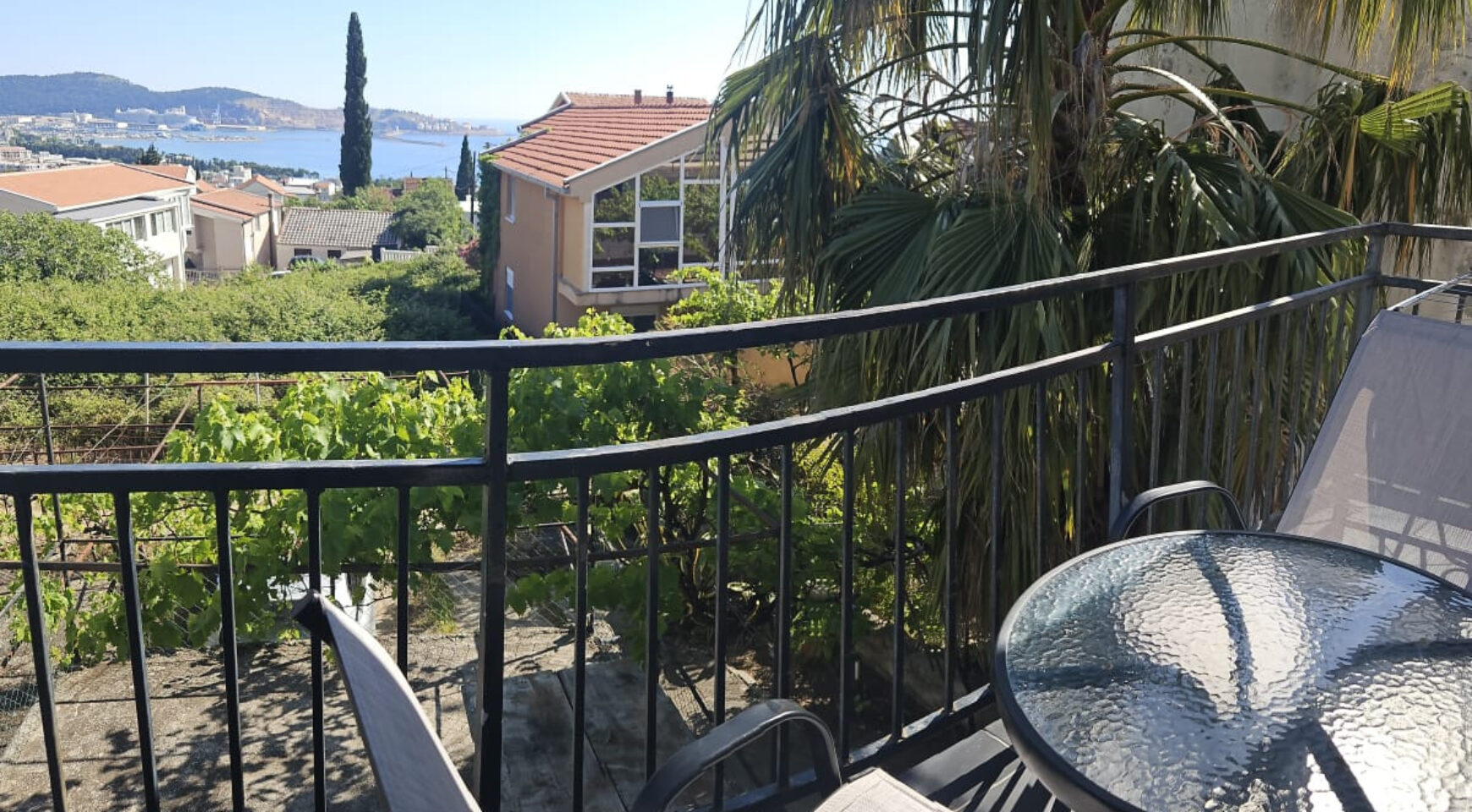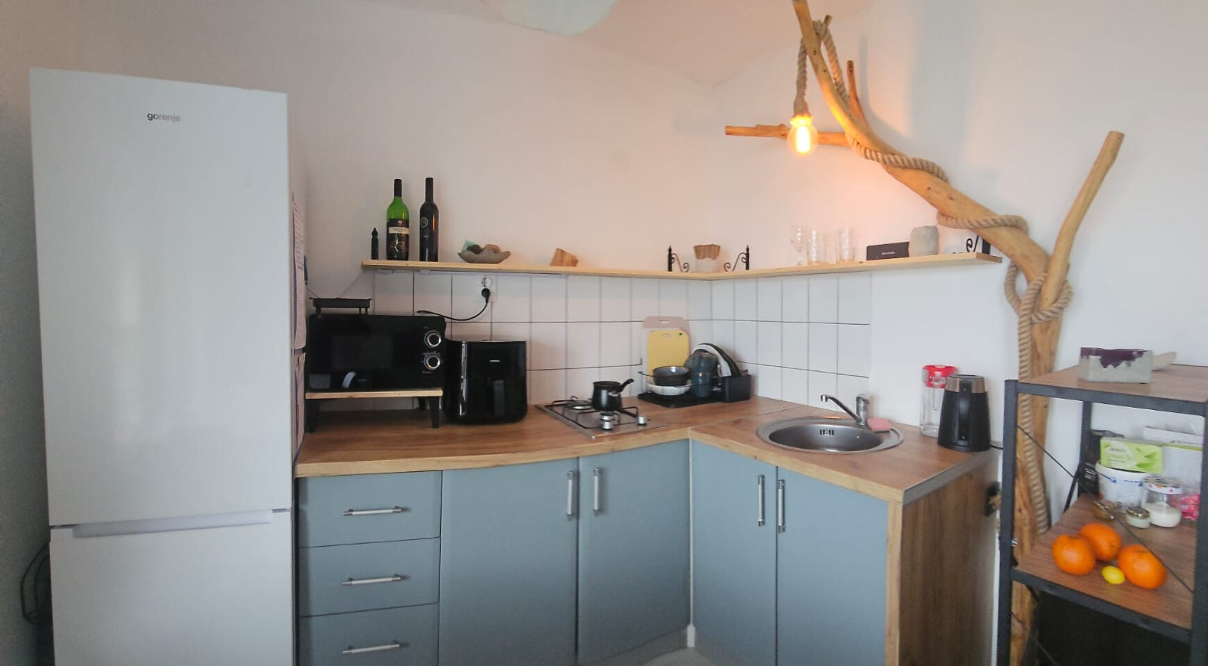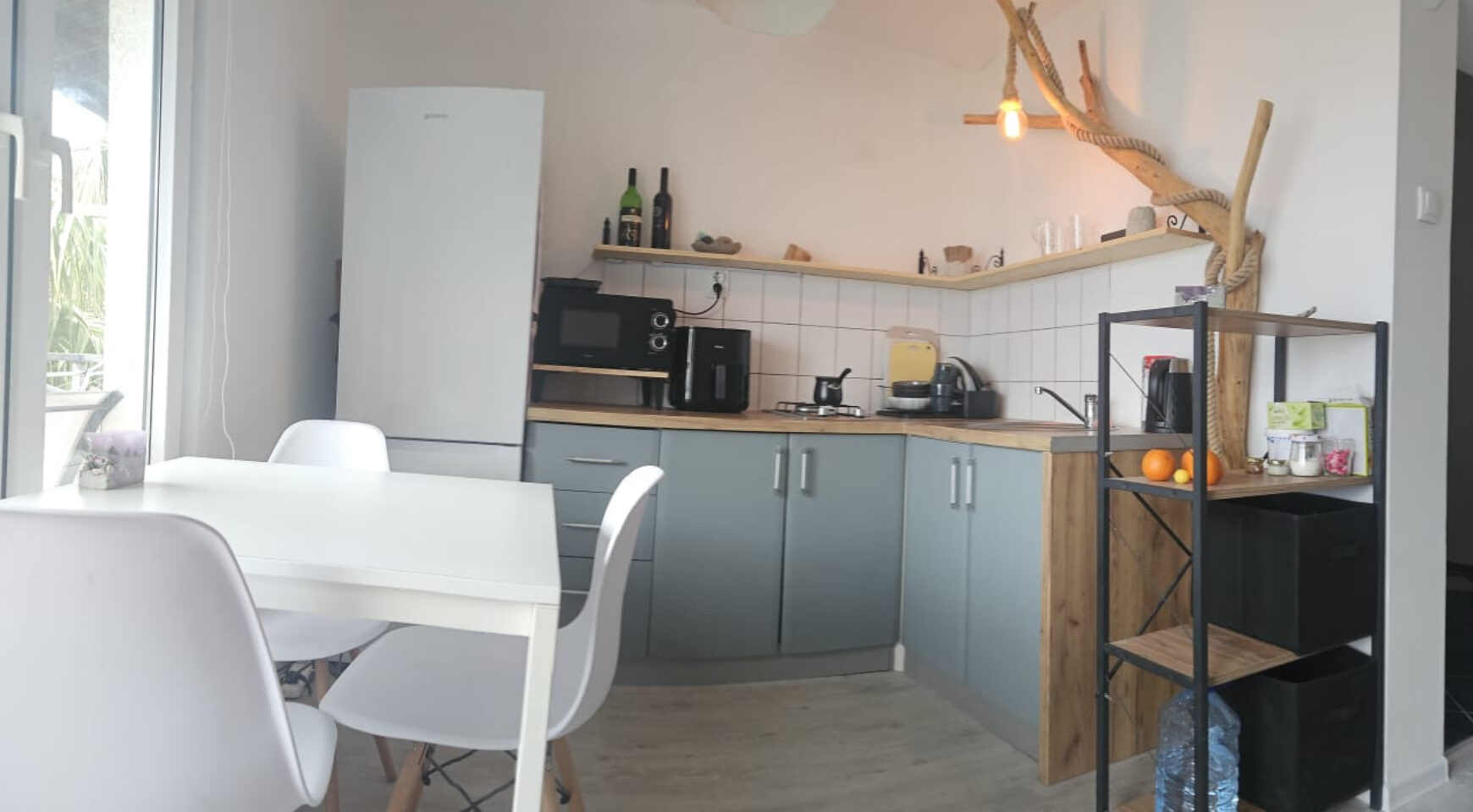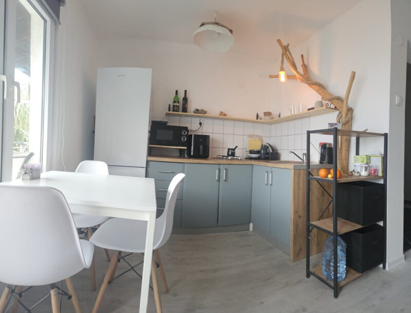 Struktura: Prostorna kuhinja-dnevna soba sa velikim balkonom i pogledom na more, dve spavaće sobe i kupatilo.