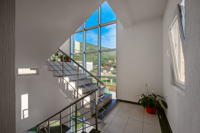 Kuća se nalazi u mirnom kraju, 5 minuta od glavnog autoputa koji povezuje Budvu i Kotor. Plaža Jaz je udaljena 3 kilometra. Budva je udaljena 15 minuta vožnje, Kotor je udaljen 25 minuta. Aerodrom Tivat je udaljen 20 minuta vožnje automobilom.