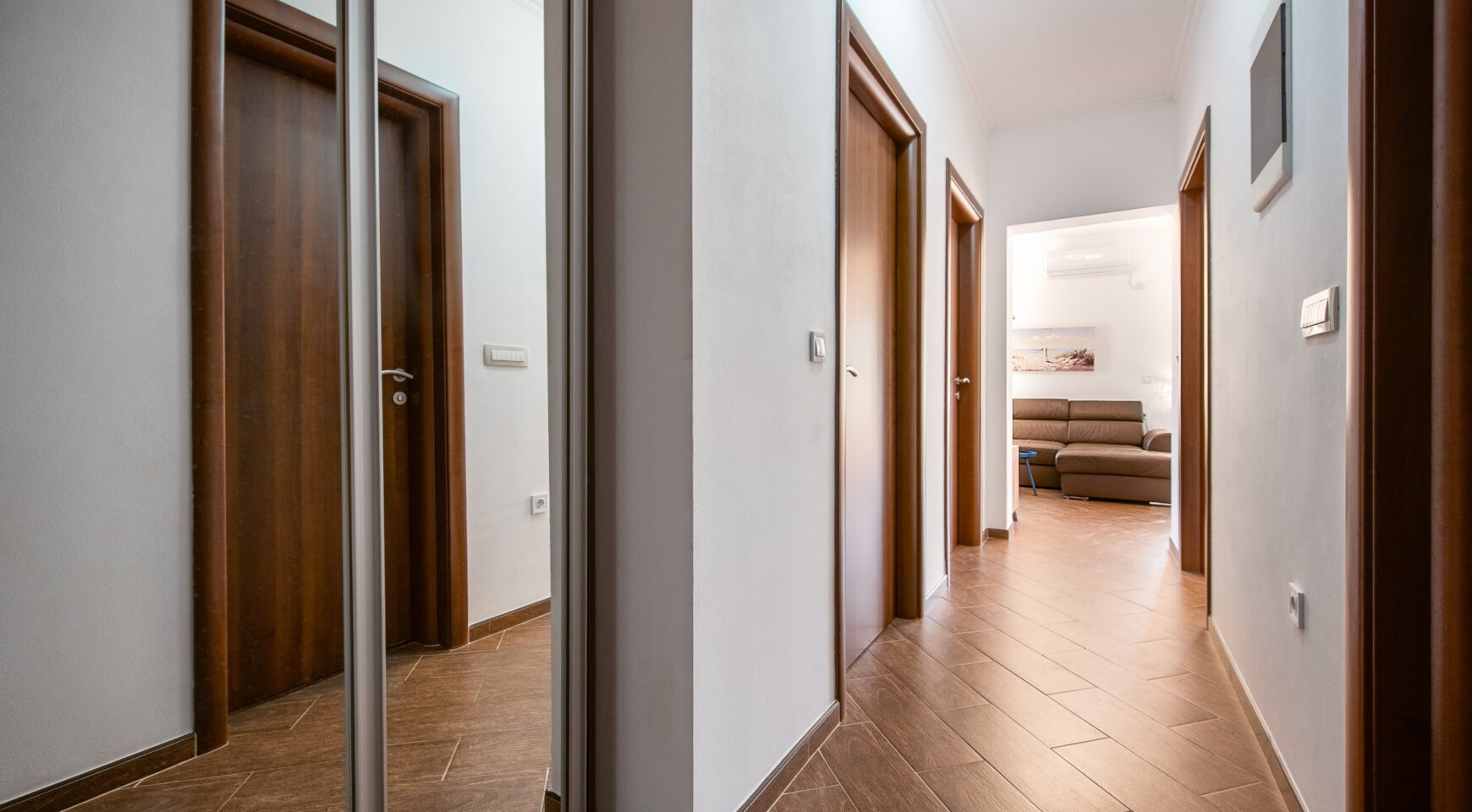 Stan se sastoji od dve spavaće sobe, dnevnog boravka sa kuhinjskim delom, kupatila i terase.