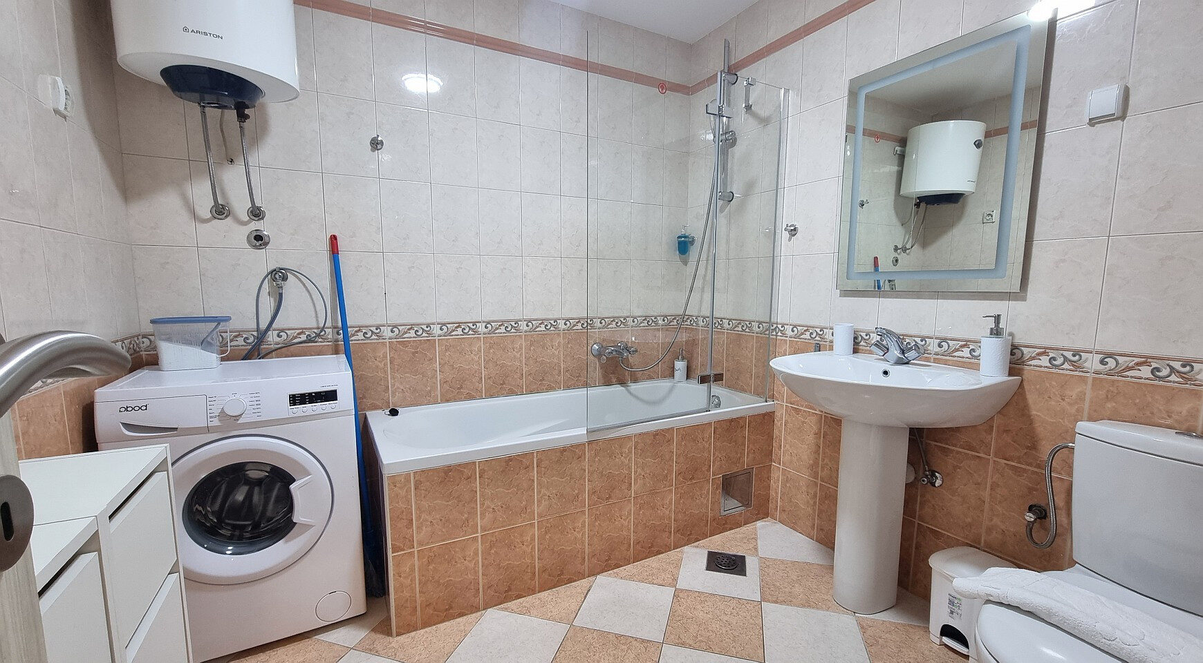 Stan ima odličan raspored, uključujući svetlu dnevnu sobu u kombinaciji sa malom kuhinjom, dve udobne spavaće sobe, hodnik i kupatilo sa tušem. Prostorna terasa je opremljena baštenskim nameštajem.