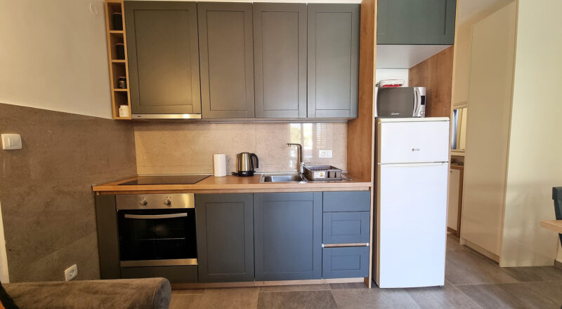 Lokacija u mirnom i tihom delu Dobrote omogućava lak pristup svim potrebnim sadržajima: škola, prodavnice, kafići i restorani su u blizini. More i plaža su udaljeni samo 7 minuta lagane šetnje.