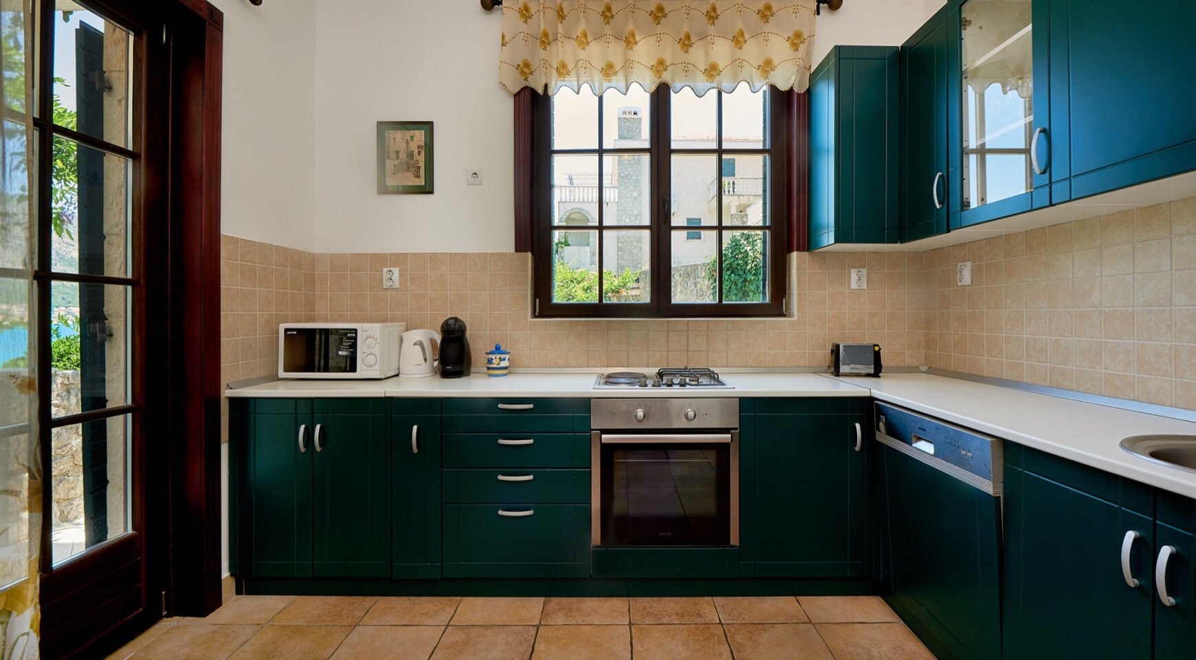 Vila ima dobro osmišljen i funkcionalan raspored. Prostorna dnevna soba sa trpezarijom ispunjena je prirodnim svetlom i otvara se na terase sa pogledom na more. Kuhinja je potpuno opremljena i spremna za upotrebu.