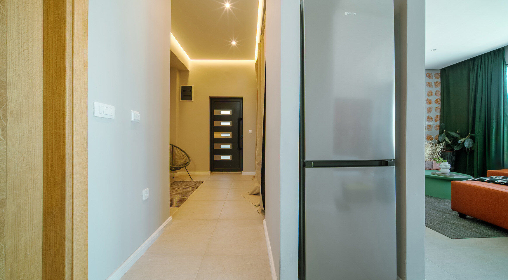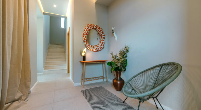 Unutrašnjost ima autorski dizajn sa setom nekoliko scenarija osvetljenja. U dekoraciji su korišćene italijanske keramičke pločice najvišeg kvaliteta, podovi u spavaćim sobama od prirodnog parketa, sistemi za klimatizaciju i ventilaciju, grejani podovi, kamini.